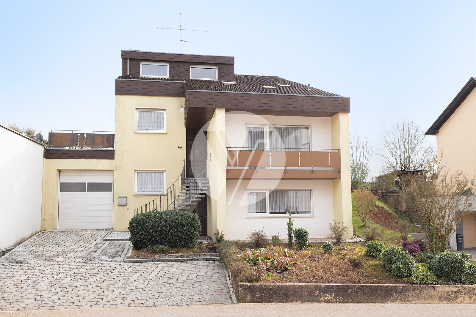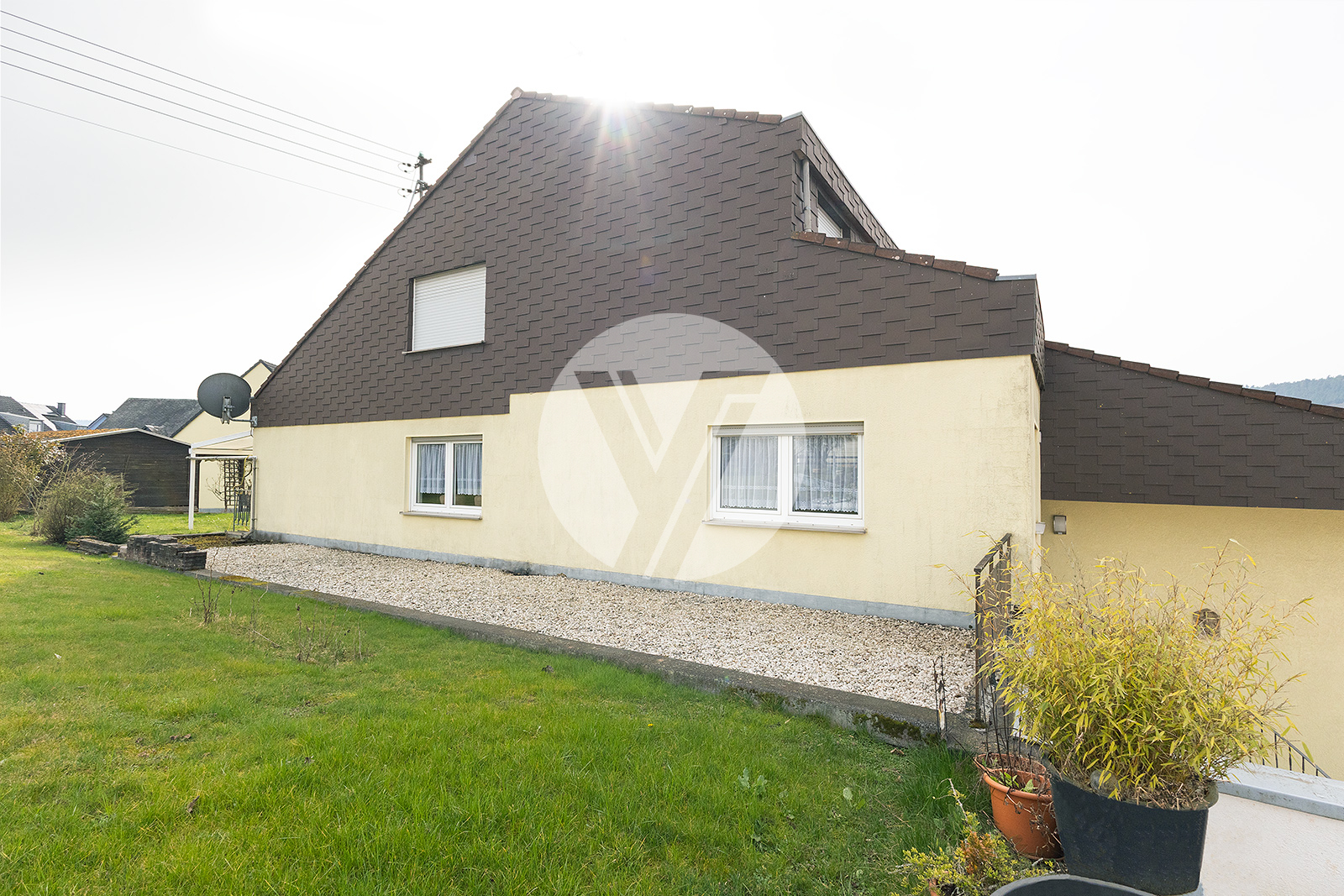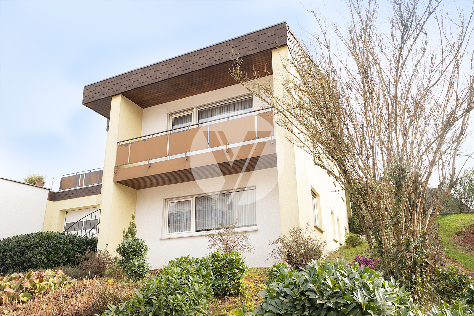 Willkommen in diesem interessanten Architektenhaus, das im Jahr 1980 erbaut wurde und durch seine individuelle Architektur besticht. In zentraler Lage von Föhren gelegen, vereint dieses sehr solide gebaute Gebäude Komfort und gute Erreichbarkeit. Es präsentiert sich im baujahrsgerechten Zustand, was die Möglichkeit bietet, das Objekt nach Ihren eigenen Vorstellungen zu renovieren und anzupassen. Die großzügigen Wohnflächen des Familienhauses erstrecken sich über insgesamt drei Etagen, wobei sich die Grundrisse durch einen interessanten Etagenversatz auszeichnen. Die Immobilie verfügt über zwei abgeschlossene Wohneinheiten, die jeweils über separate Eingänge zugänglich sind. Die Wohnung im Untergeschoss offeriert eine Fläche von ca. 60 m² und eignet sich hervorragend zur klassischen Vermietung, für Gäste oder als komfortables Office. Die Hauptwohneinheit in den oberen Geschossen umfasst beeindruckende ca. 182 m² Wohnfläche und ist ideal für die große Familie. Zusätzlich bietet die Immobilie eine Nutzfläche von ca. 120 m², die vielfältige Möglichkeiten zur individuellen Gestaltung eröffnet. Die geräumige, überlange Garage nebst großem Bereich für Werkstatt oder/oder zusätzlicher Abstellfläche bilden einen großen Teil dieser Nutzfläche. Des Weiteren befinden sich im hinteren Kellerbereich noch die Waschküche, der Heizungsraum sowie ein weiterer Abstellraum. Ein ganz besonderer Ort ist die sonnige, überdachte Süd-West-Terrasse, die Ihnen den perfekten Rückzugsort für entspannte Stunden im Freien bietet. Umgeben von Gärten und Grünflächen ist dies ein wunderschöner Ort für Erholung und Freizeitaktivitäten. Diese besondere Immobilie überzeugt nicht nur durch ihre interessante Grundrissgestaltung, sondern auch durch ein umfangreiches Nutzungspotential. Ob als Zuhause für Ihre große Mehrgenerationen-Familie oder für eine klassische Untervermietung der separaten Einliegerwohnung. Diese Immobilie hält zahlreiche Möglichkeiten für Sie bereit.