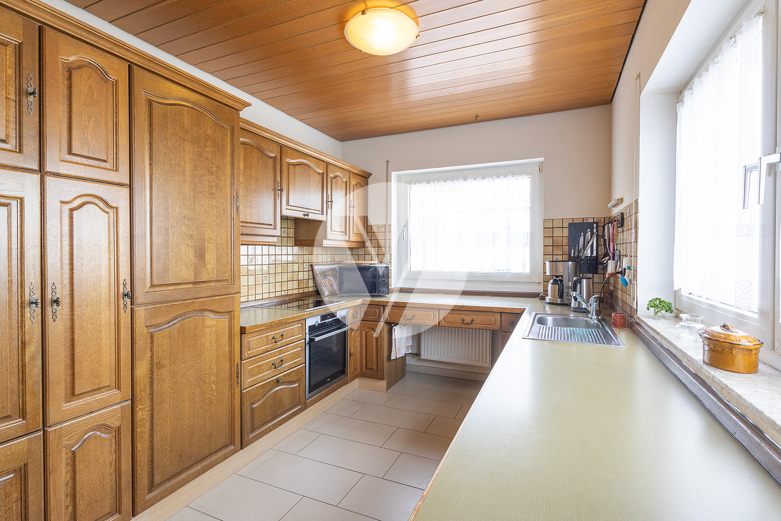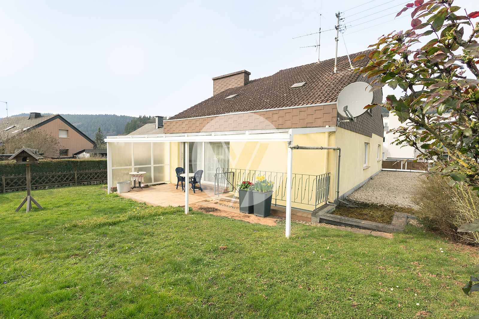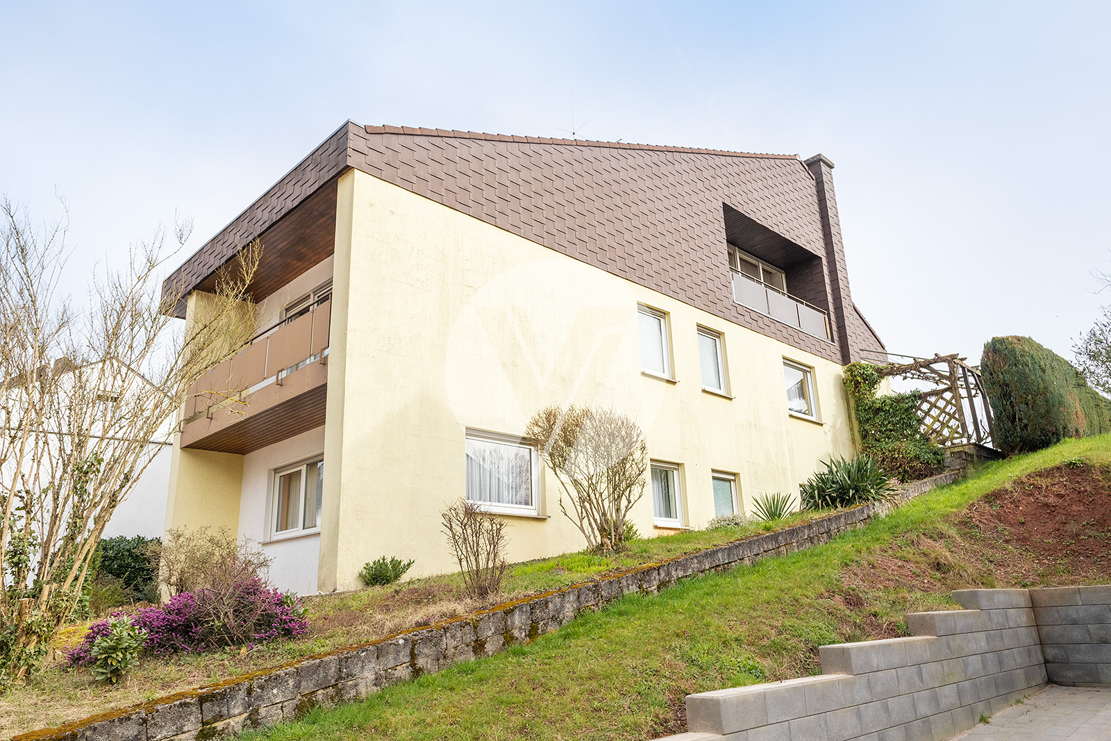 Willkommen in diesem interessanten Architektenhaus, das im Jahr 1980 erbaut wurde und durch seine individuelle Architektur besticht. In zentraler Lage von Föhren gelegen, vereint dieses sehr solide gebaute Gebäude Komfort und gute Erreichbarkeit. Es präsentiert sich im baujahrsgerechten Zustand, was die Möglichkeit bietet, das Objekt nach Ihren eigenen Vorstellungen zu renovieren und anzupassen. Die großzügigen Wohnflächen des Familienhauses erstrecken sich über insgesamt drei Etagen, wobei sich die Grundrisse durch einen interessanten Etagenversatz auszeichnen. Die Immobilie verfügt über zwei abgeschlossene Wohneinheiten, die jeweils über separate Eingänge zugänglich sind. Die Wohnung im Untergeschoss offeriert eine Fläche von ca. 60 m² und eignet sich hervorragend zur klassischen Vermietung, für Gäste oder als komfortables Office. Die Hauptwohneinheit in den oberen Geschossen umfasst beeindruckende ca. 182 m² Wohnfläche und ist ideal für die große Familie. Zusätzlich bietet die Immobilie eine Nutzfläche von ca. 120 m², die vielfältige Möglichkeiten zur individuellen Gestaltung eröffnet. Die geräumige, überlange Garage nebst großem Bereich für Werkstatt oder/oder zusätzlicher Abstellfläche bilden einen großen Teil dieser Nutzfläche. Des Weiteren befinden sich im hinteren Kellerbereich noch die Waschküche, der Heizungsraum sowie ein weiterer Abstellraum. Ein ganz besonderer Ort ist die sonnige, überdachte Süd-West-Terrasse, die Ihnen den perfekten Rückzugsort für entspannte Stunden im Freien bietet. Umgeben von Gärten und Grünflächen ist dies ein wunderschöner Ort für Erholung und Freizeitaktivitäten. Diese besondere Immobilie überzeugt nicht nur durch ihre interessante Grundrissgestaltung, sondern auch durch ein umfangreiches Nutzungspotential. Ob als Zuhause für Ihre große Mehrgenerationen-Familie oder für eine klassische Untervermietung der separaten Einliegerwohnung. Diese Immobilie hält zahlreiche Möglichkeiten für Sie bereit.