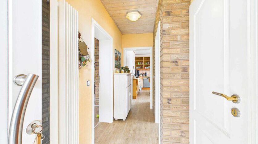 Die Wohnfläche beträgt etwa 100 m² und verteilt sich auf zwei Etagen. Im Erdgeschoss befindet sich ein großzügiger Wohn- und Essbereich, der viel Tageslicht erhält und einen angenehmen Lebensmittelpunkt bildet. Angrenzend liegt die Küche, die ebenfalls genügend Platz für den Alltag bietet. Ein modernes Duschbad mit Tageslicht ergänzt das Raumangebot auf dieser Ebene.