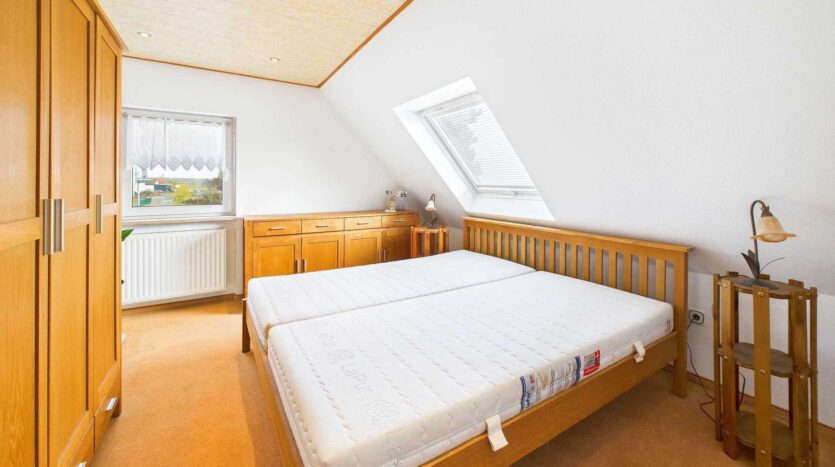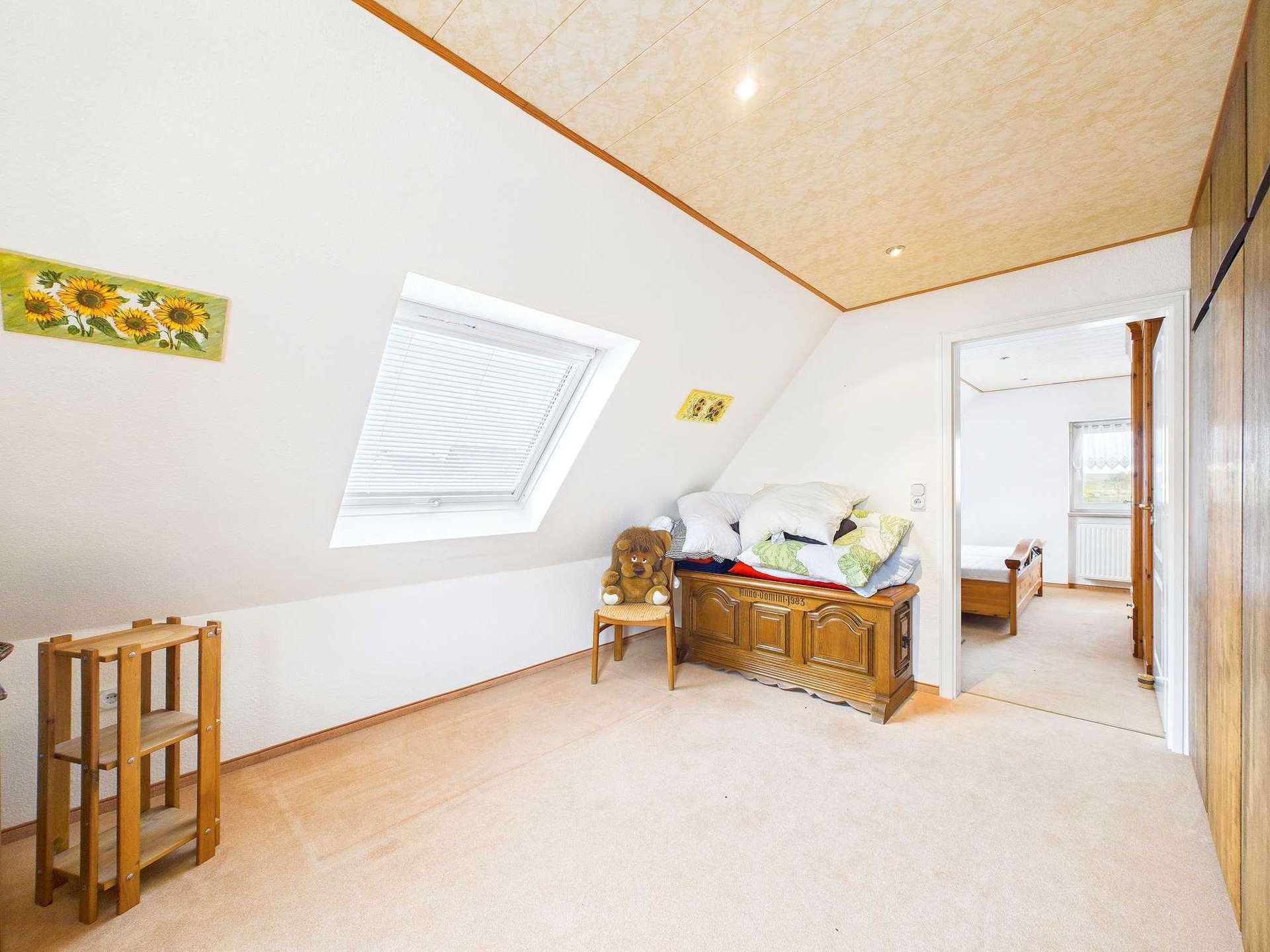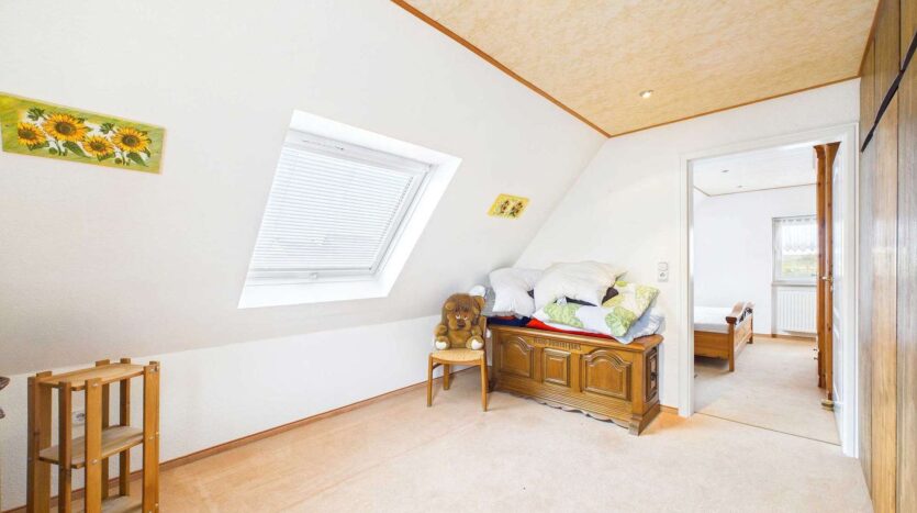 Das Dachgeschoss verfügt über drei Schlafzimmer. Eines der Zimmer ist als Durchgangszimmer angelegt und eignet sich daher insbesondere als Ankleide, Arbeitsbereich oder als Spielzimmer in Verbindung mit dem angrenzenden Kinderzimmer. Aufgrund dieser Raumstruktur bietet sich die Immobilie vor allem für ein Paar oder eine kleine Familie mit einem Kind an.