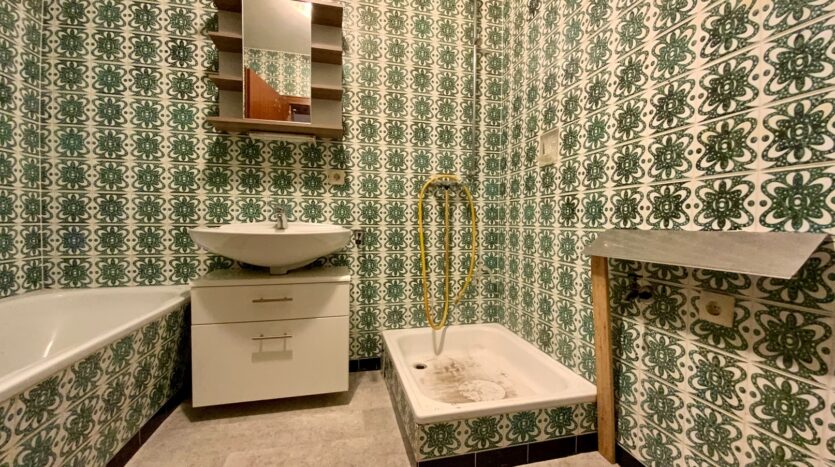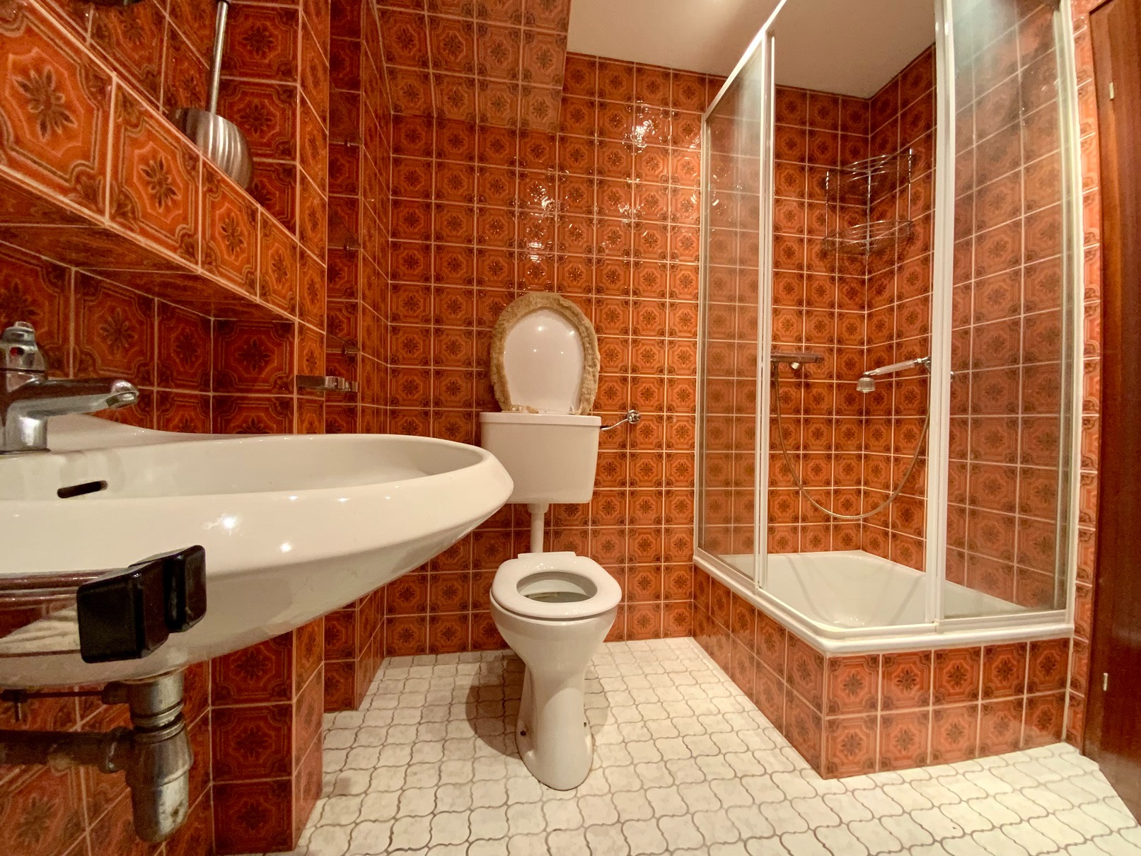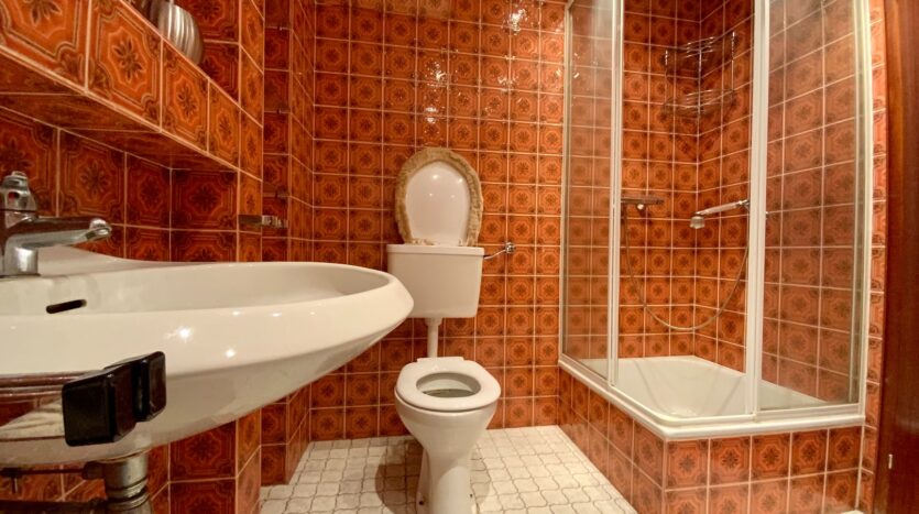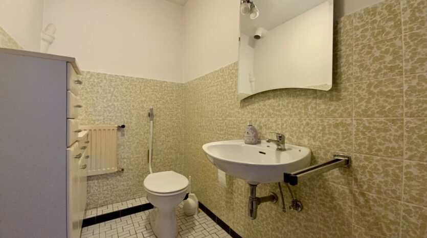 Hier befindet sich der Haupteingang mit Flur und einem Treppenhaus zum Erdgeschoss, ein Zimmer mit Küchenanschluss, Abstellraum, Badezimmer (Wanne, Dusche und Waschbecken), separate Toilette und Schlafzimmer.