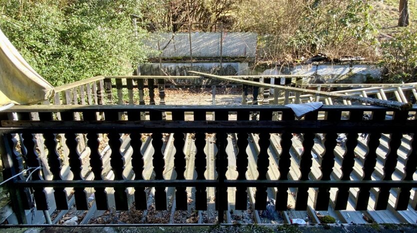 Über eine Türe am Ende des Flures befindet sich eine Überdachung wo sich aktuell eine Werkstatt befindet. Die Überdachung ist in einem schlechten Zustand.