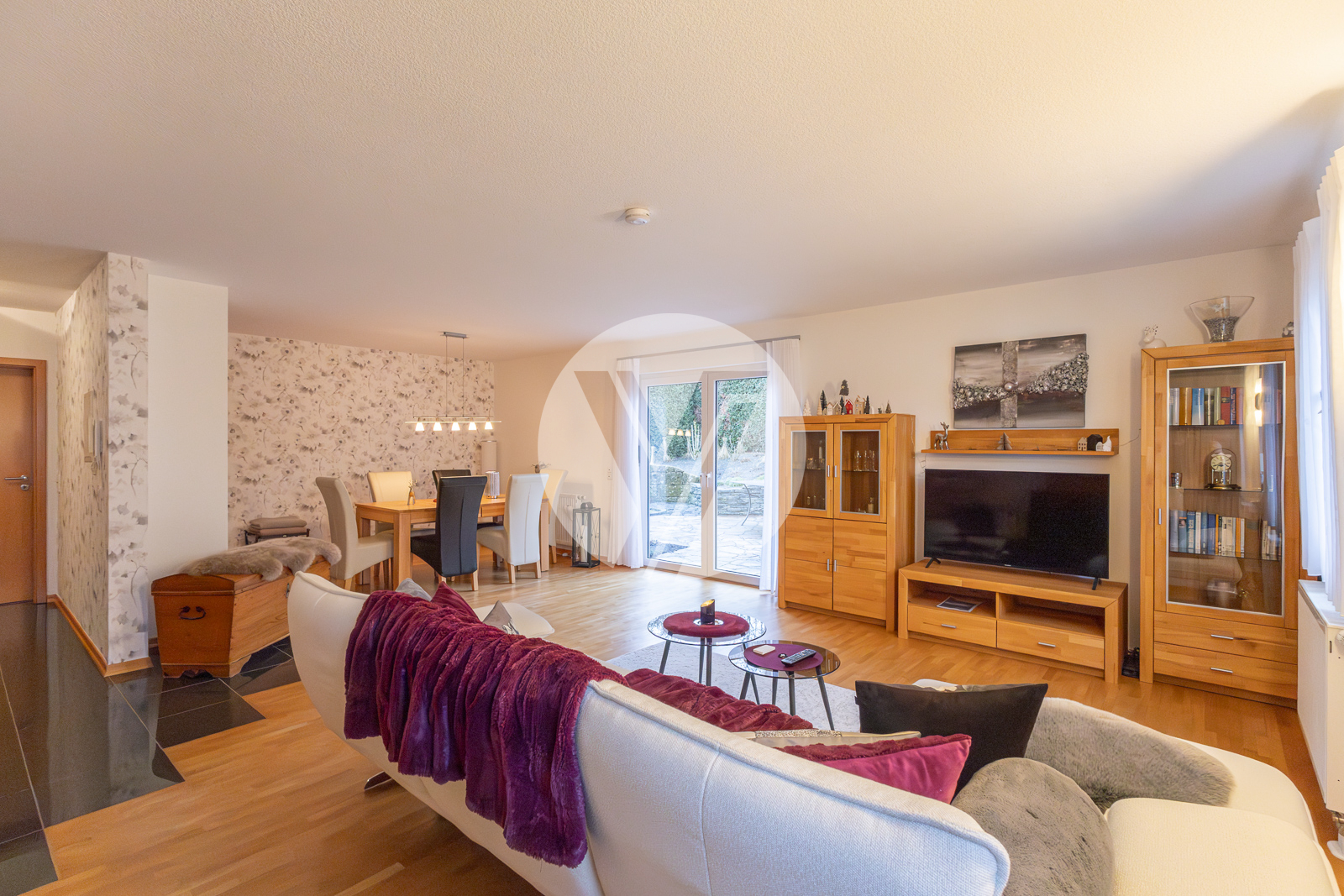 offenes Kochen / Wohnen / Essen, Schlafen, Bad, HWR / AR, Terrasse und Garten