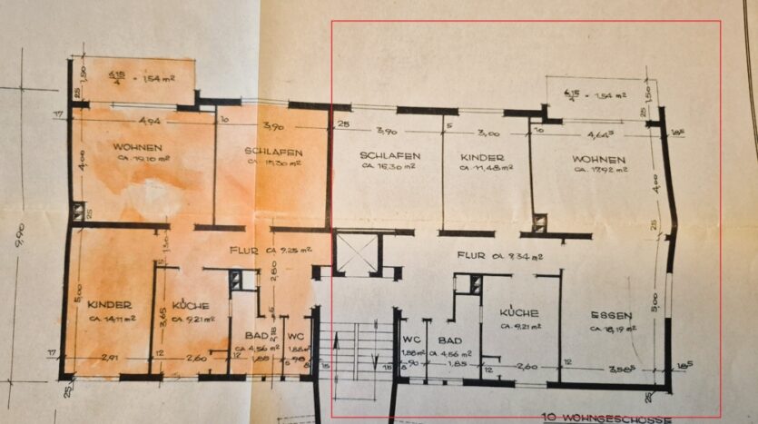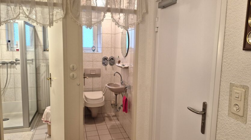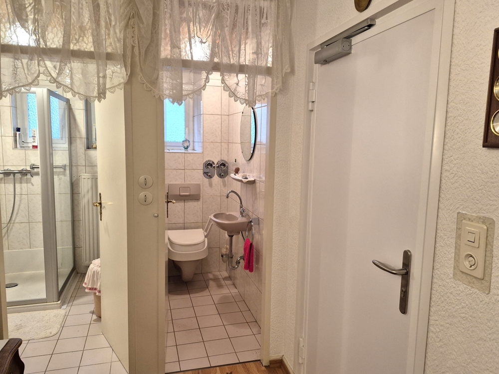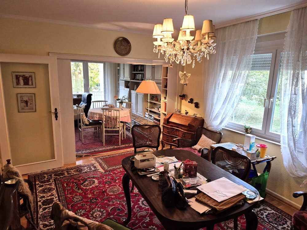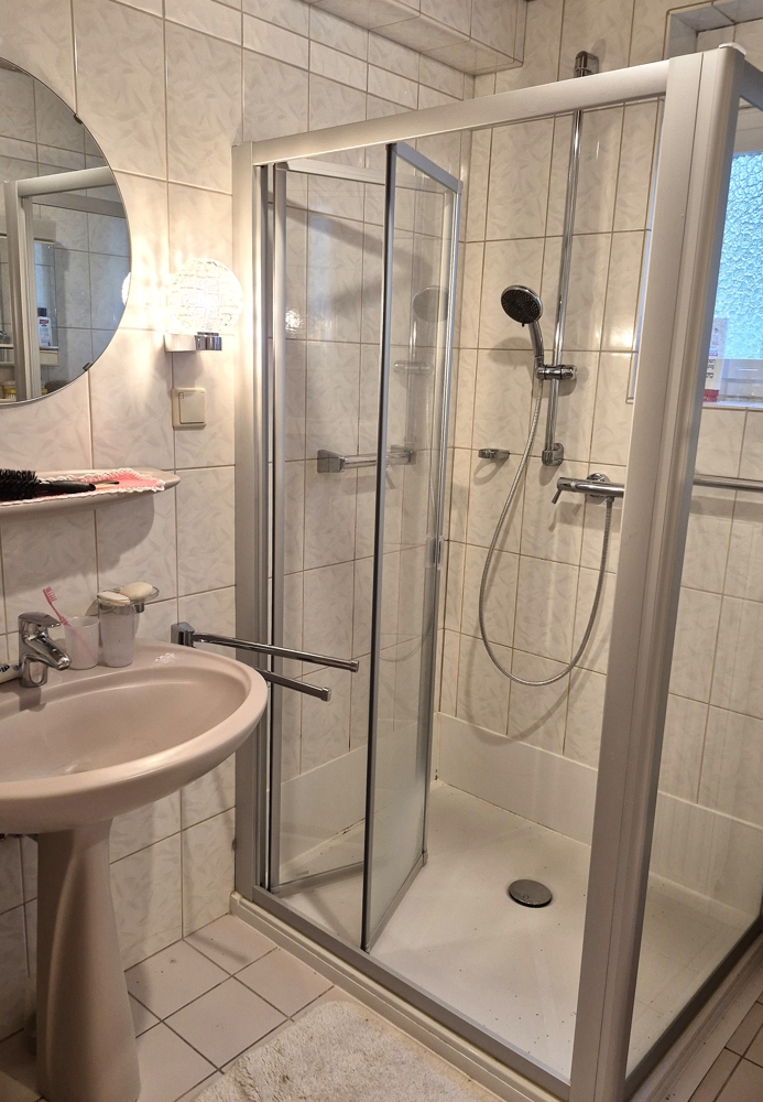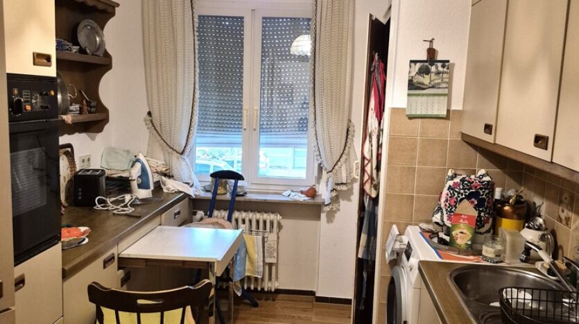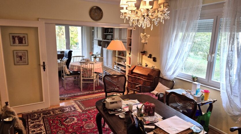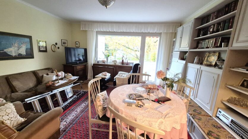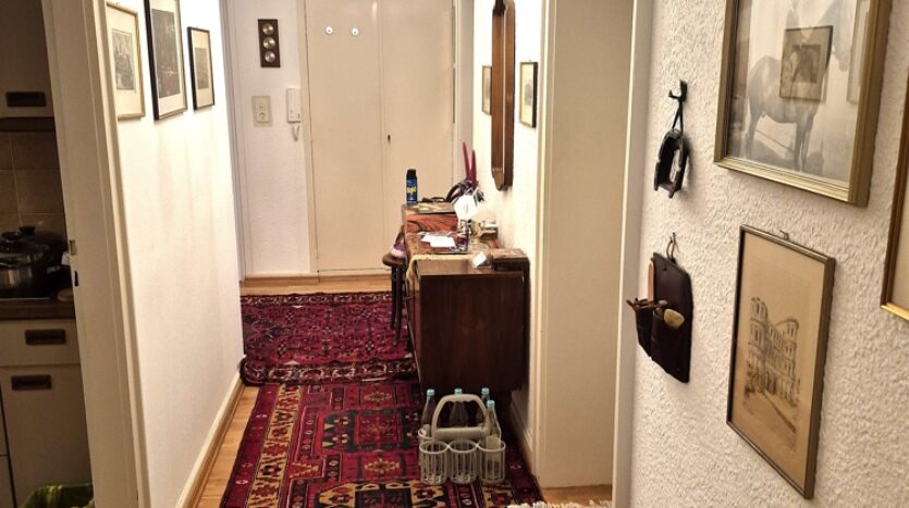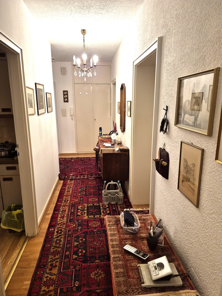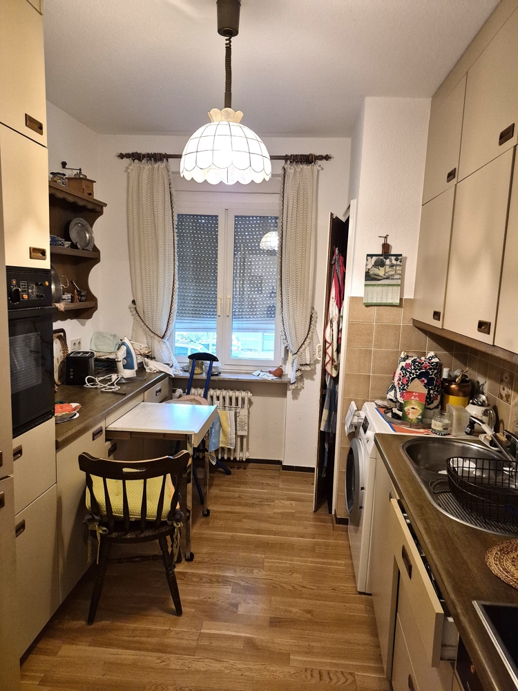 Aktuell befindet sich die Eigentumswohnung im renovierungs- und sanierungsbedürftigen Zustand. Die Installationen sind überwiegend aus dem Baujahr. Bad und Gäste-WC wurden bereits überarbeitet und 2023 wurden im gesamten Objekt die Eingangstüren erneuert und das Treppenhaus neu gestrichen.