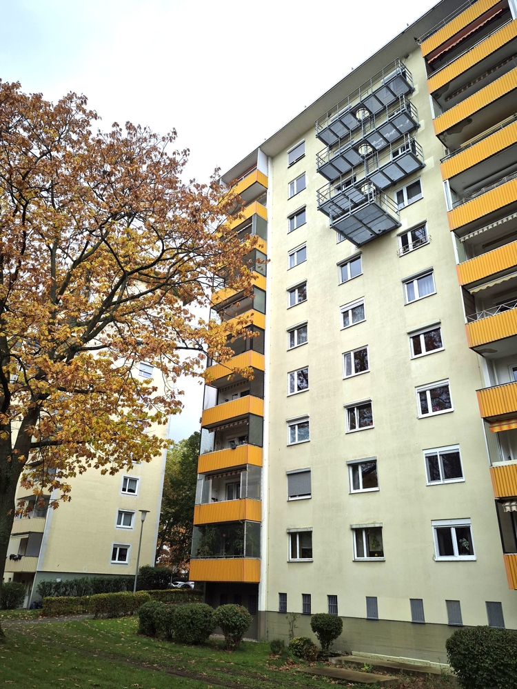 Die Wohnung befindet sich im 2. Obergeschoss einer Wohnanlage mit 60 Wohneinheiten aus dem Baujahr 1956.