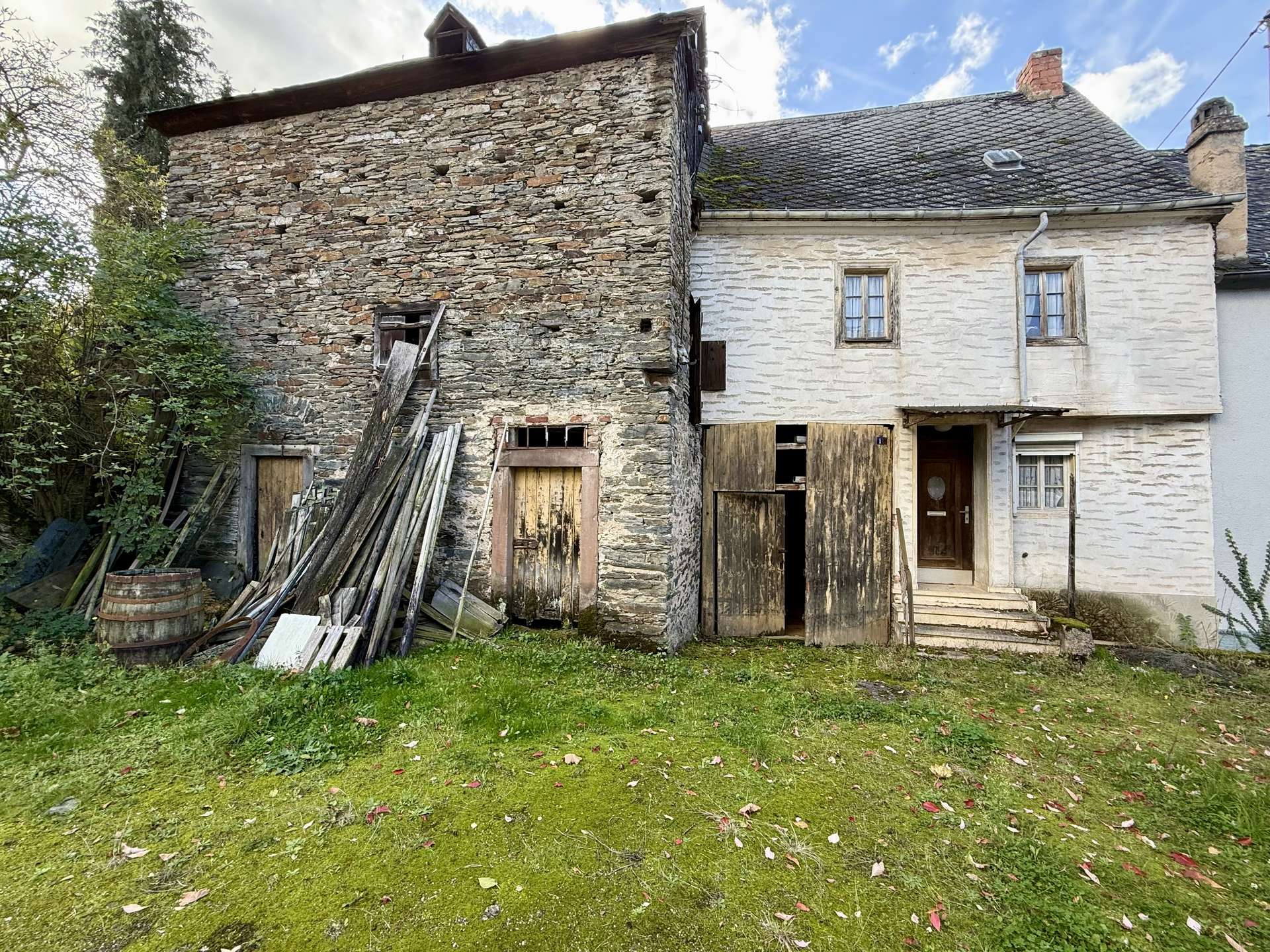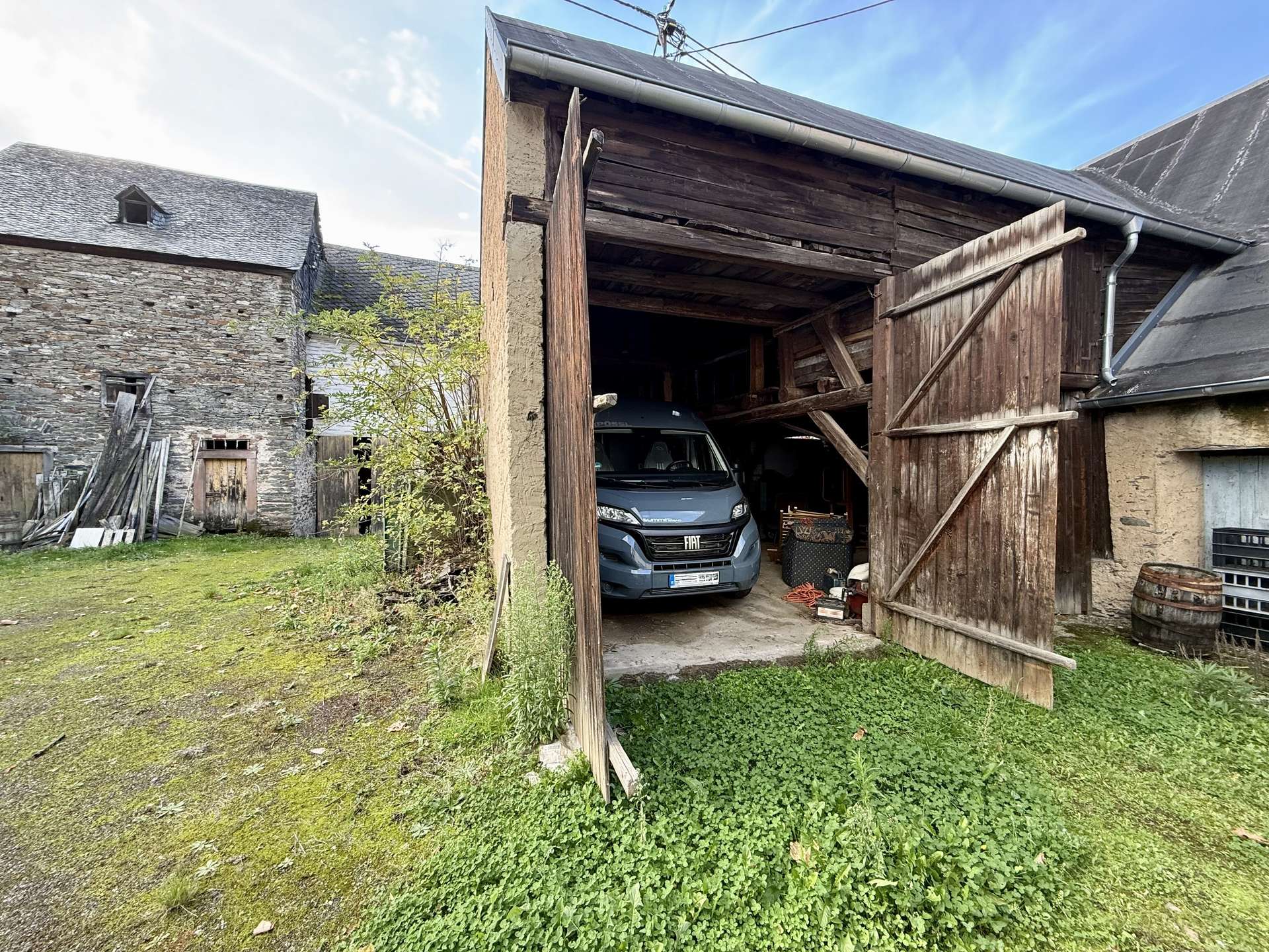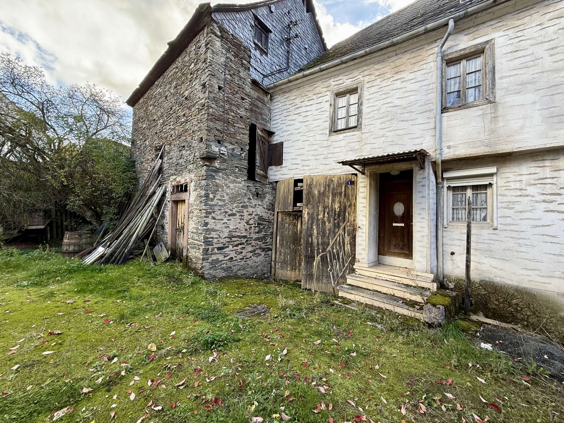 Auf dem insgesamt 845m² großen Grundstück stehen 2 Häuser mit Scheunen, die grundsaniert werden müssen.