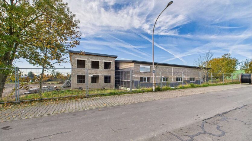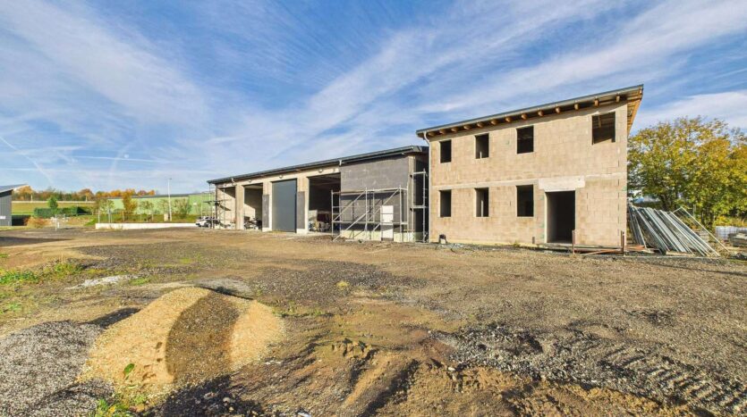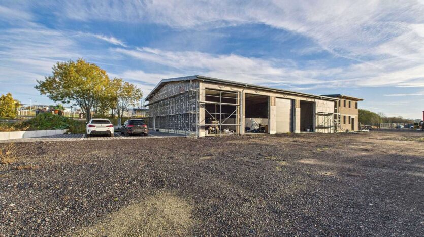 Die Halle und das Bürogebäude wurden im Jahr 2021 massiv errichtet.