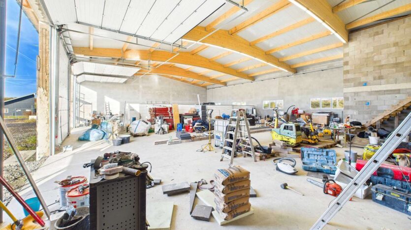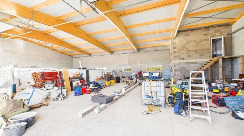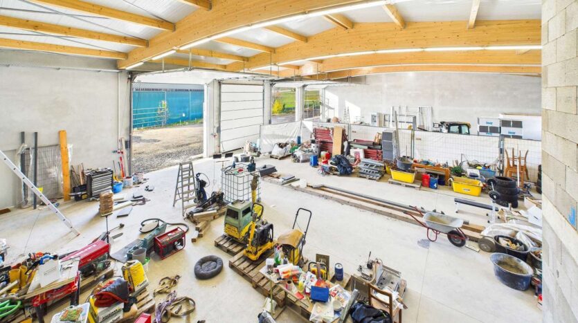 Ausgestattet ist die Halle mit vier Toren, die jeweils rund 4 Meter breit und ca. 4,50 Meter hoch sind. Dies ermöglicht eine komfortable Zufahrt sowie das Ein- und Auslagern auch größerer Fahrzeuge und Maschinen. Der Boden besteht aus einer hochbelastbaren Stahlfaserbodenplatte, die für anspruchsvolle Nutzungen ausgelegt ist. Innerhalb der Halle stehen zudem zwei sanitär ausgestattete WC-Bereiche sowie ein abgetrennter Büroraum zur Verfügung.