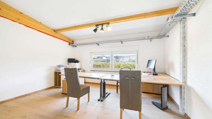 Angrenzend befindet sich das eigenständige Bürogebäude mit einer Fläche von rund 170 m², verteilt auf zwei Etagen. Die Grundrissgestaltung bietet die Möglichkeit zur Nutzung als klassische Büroeinheiten, Besprechungsräume oder auch als Betreiber- bzw. Aufenthaltsbereich. Die Flexibilität der Nutzungsmöglichkeiten erlaubt eine bedarfsgerechte Anpassung an betriebliche Abläufe.