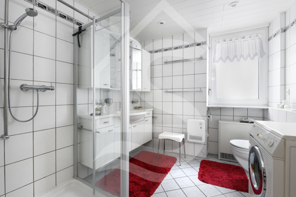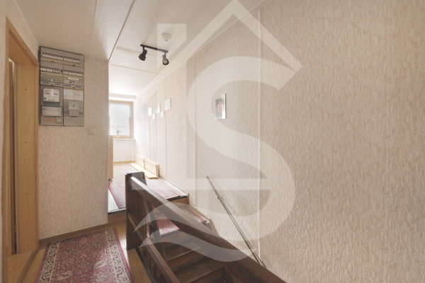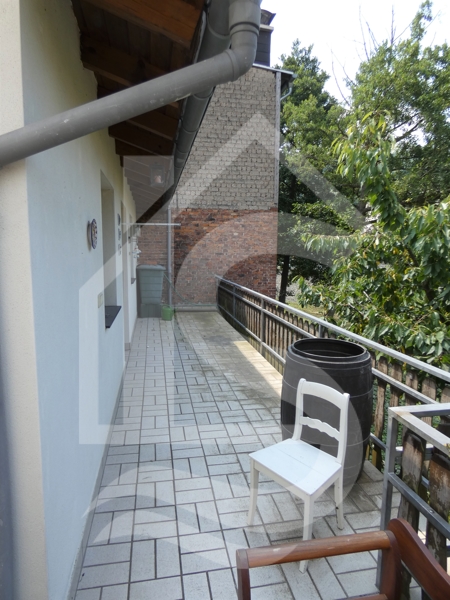 Auf der Rückseite dieser befindet sich ein kleiner Balkon. Ein kleiner Gartenbereich, direkt am „Großbach“, ist hier ebenfalls noch vorhanden. Durch den Bachlauf muss natürlich hin und wieder mit Hochwasser gerechnet werden. Nichtsdestotrotz kann man sich hier, in den warmen Sommermonaten, mit den Füßen unproblematisch eine Abkühlung holen.