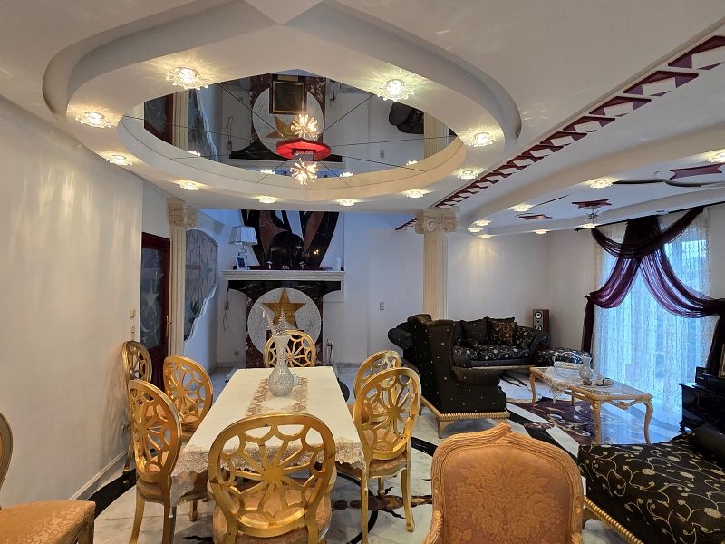 Die hochwertigen Kristalllampen der aufwändigen Deckenbeleuchtung setzen den gesamten Wohn- und Essbereich in ein wahrlich perfektes Licht.