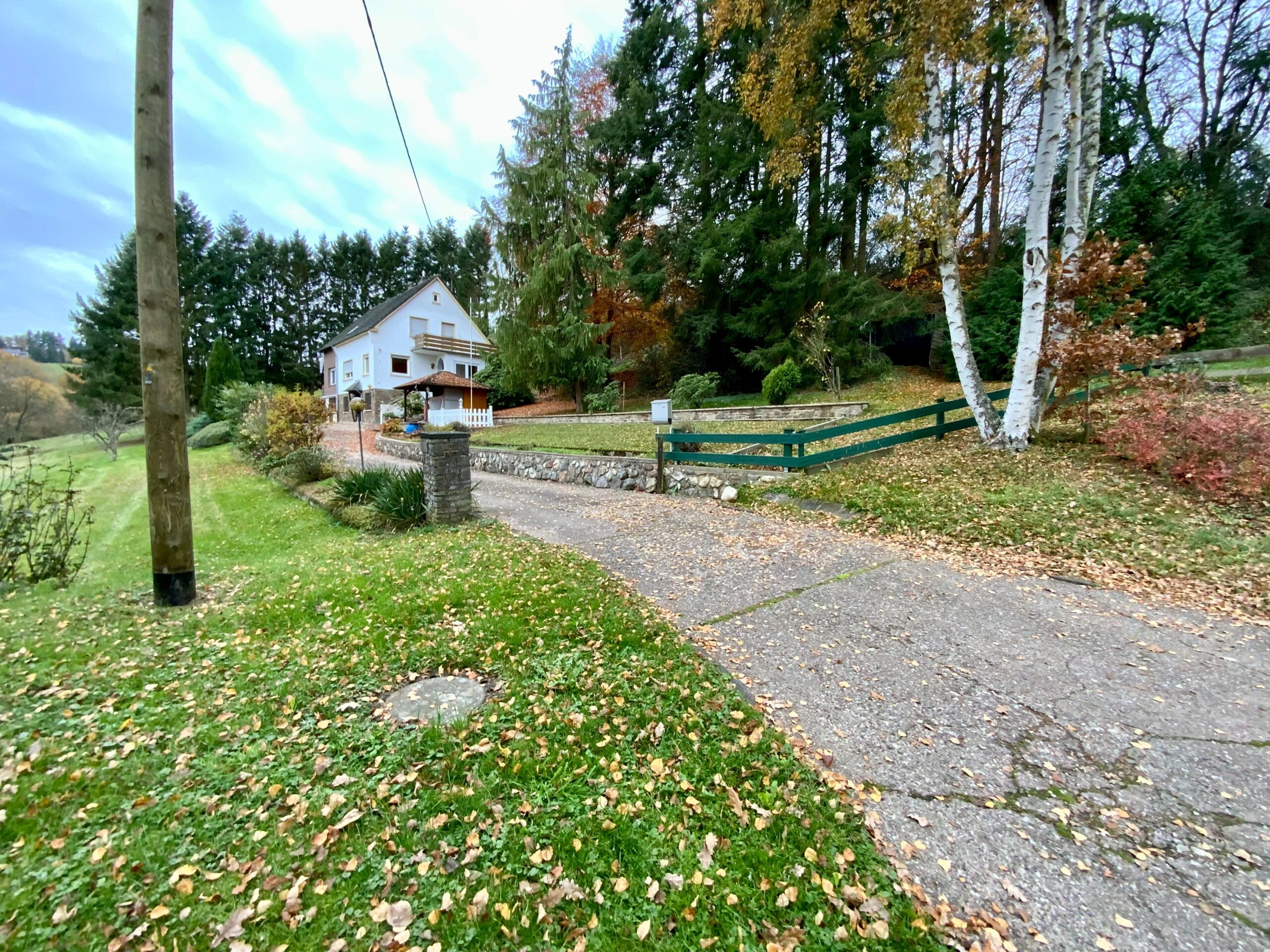 Die Immobilie ist über eine befestigte Auffahrt zu erreichen und liegt ca. 50 m entfernt von der Zugangsstraße (Sackgasse). Das Objekt bietet viel Platz für Tierhaltung, Hobbys etc. und liegt in einer sehr ruhigen Naturlage.