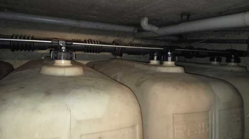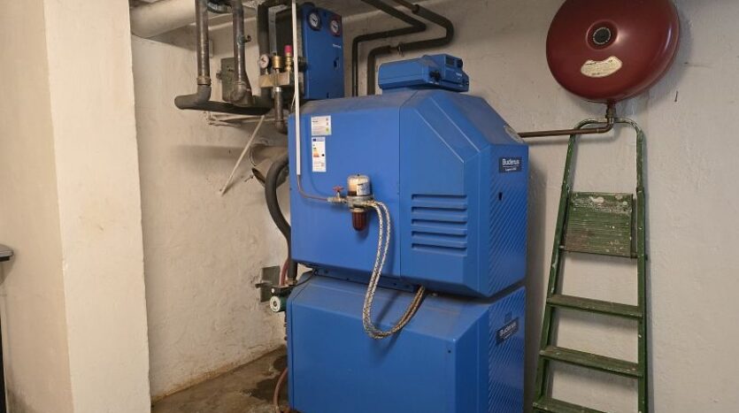 Von der Garage aus führt eine Treppe in den Keller. Im Keller stehen mehrere Abstell- und Lagerräume bereit. Hier ist auch die Ölheizung mit den dazugehörigen Kunststofftanks untergebracht.