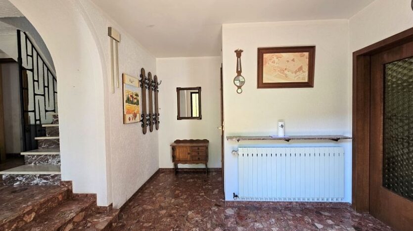 Eine massive Treppe führt zum Obergeschoss.