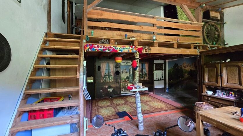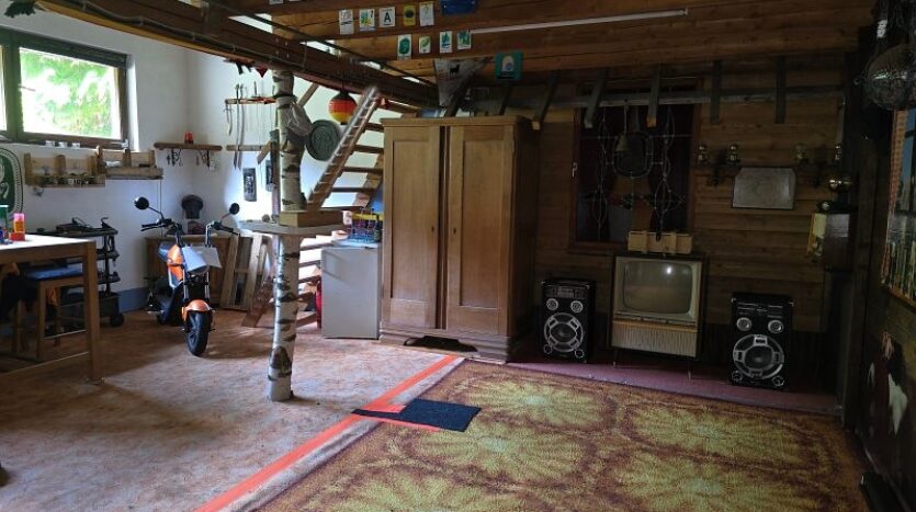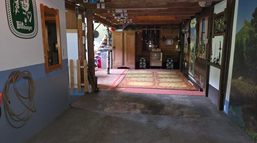 Rechts in das Wohnhaus integriert befindet sich eine sehr geräumige Garage. Der hintere Bereich der Garage wurde als Werkstatt und als Partylokation genutzt.