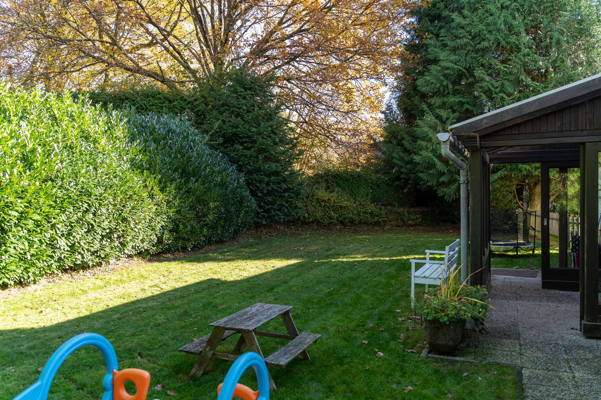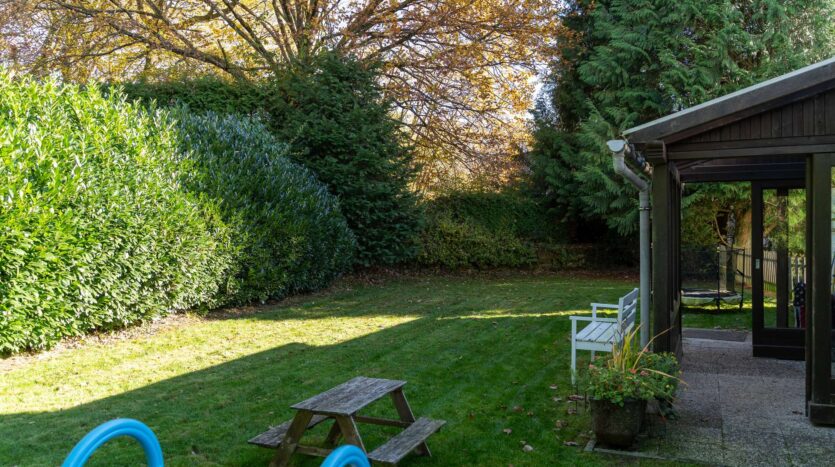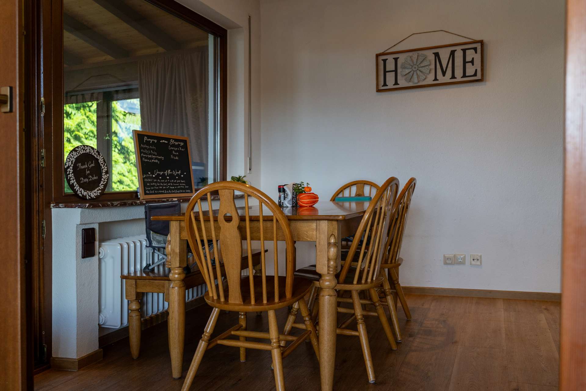 Zur Ausstattung gehören eine Einbauküche, ein gemütlicher Kachelofen und ein heller Wintergarten mit Zugang zum schönen Garten, was dieses Haus noch einladender macht.