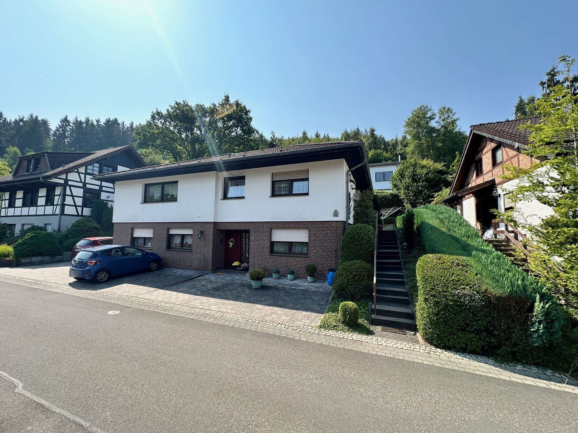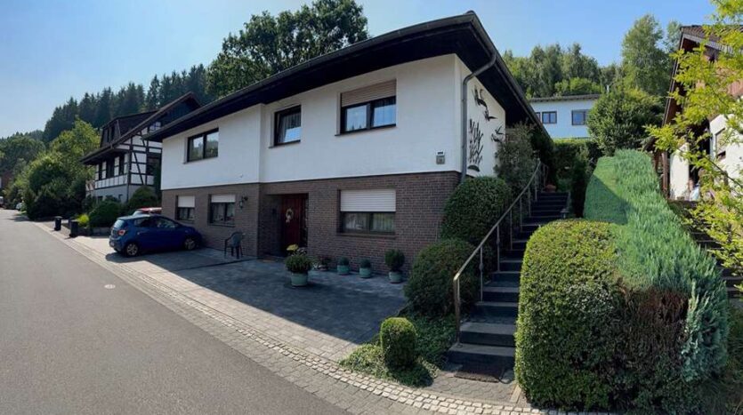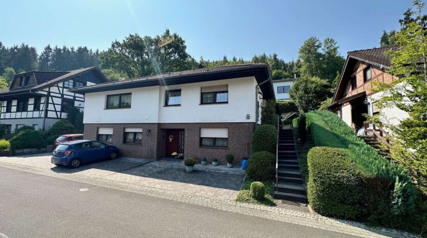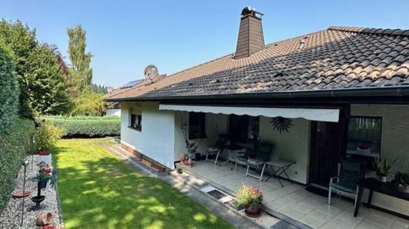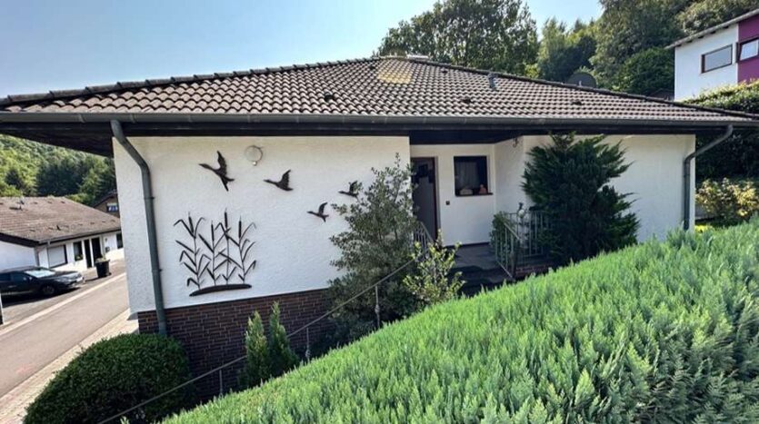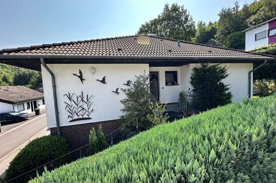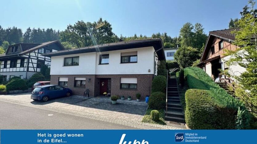 Dieses Einfamilienhaus mit Einliegerwohnung wurde im klassischen Bungalowstill 1984 in massiver Bauweise in Schleiden gebaut. Es liegt in einem ruhigen Wohngebiet in einer Sackgassenstraße ohne Durchgangsverkehr.