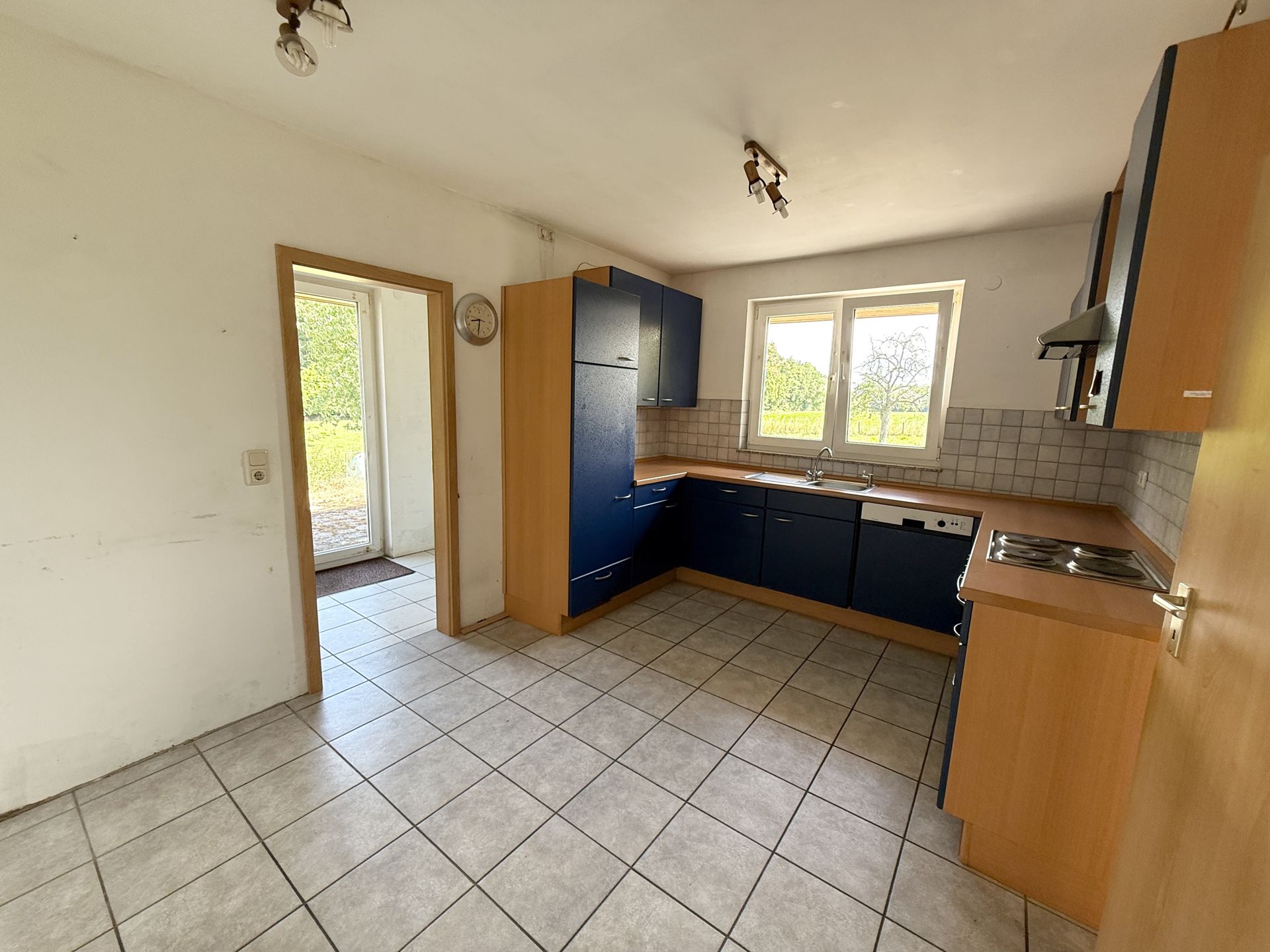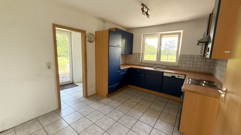 Der offene Wohn- und Essbereich bildet das Herzstück des Hauses. Große Fensterflächen sorgen hier für viel Tageslicht und einen schönen Blick in den Garten. Die Küche ist praktisch gelegen und bietet direkten Zugang zum Wohnbereich.
