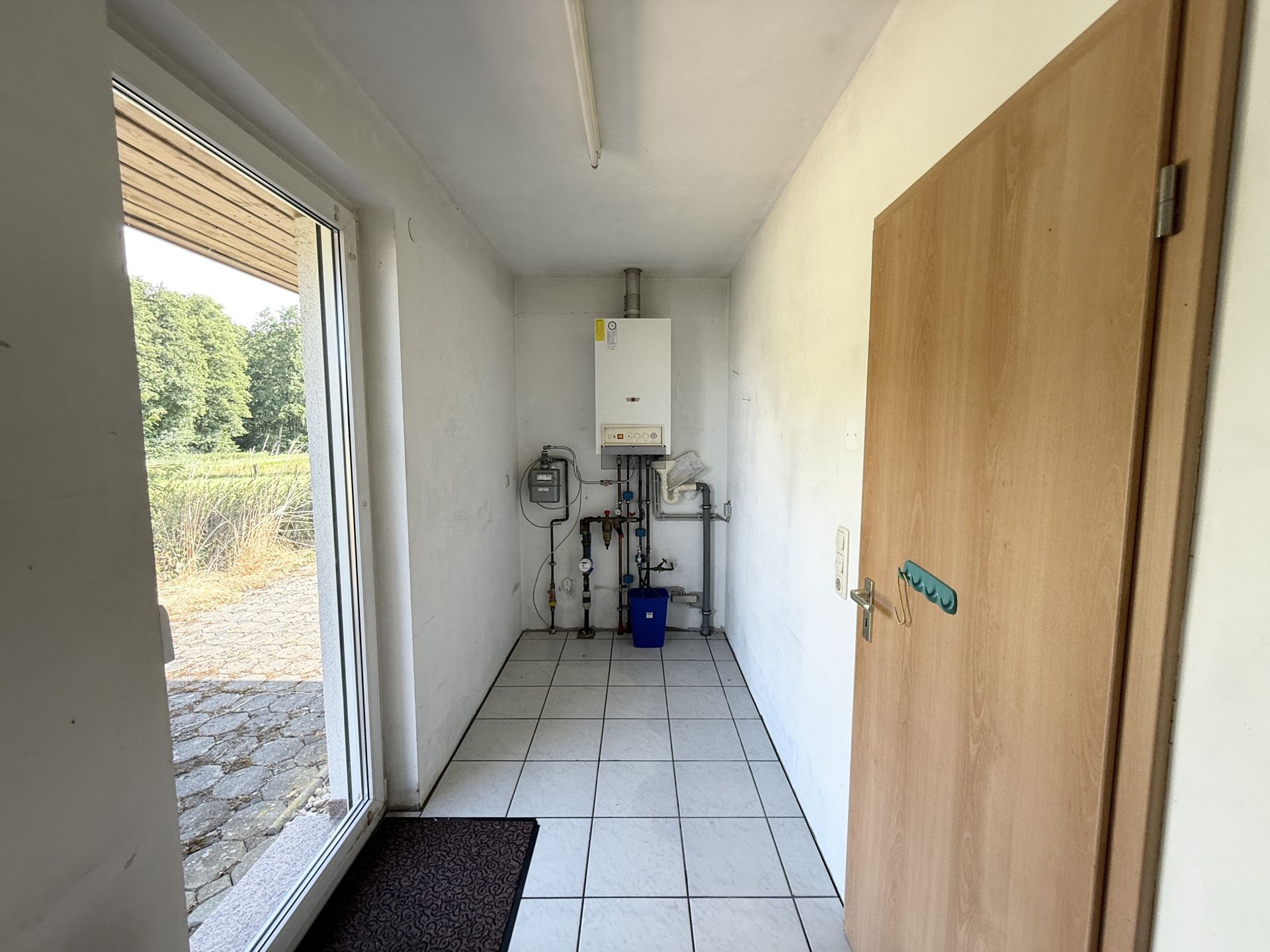 Das 700 m² große Grundstück bietet reichlich Platz für Erholung, Gartenpflege oder Spielmöglichkeiten. Eine Terrasse lädt zum Verweilen im Freien ein – sei es für gesellige Stunden oder entspannte Sommerabende.