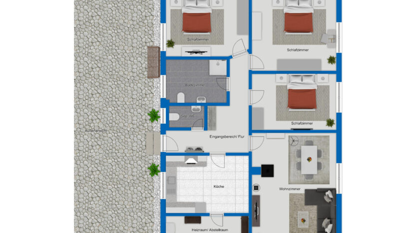 Ein weiterer Vorteil: Der Bungalow eignet sich durch seine ebenerdige Bauweise hervorragend für alle Lebensphasen – von der jungen Familie bis zum altersgerechten Wohnen.