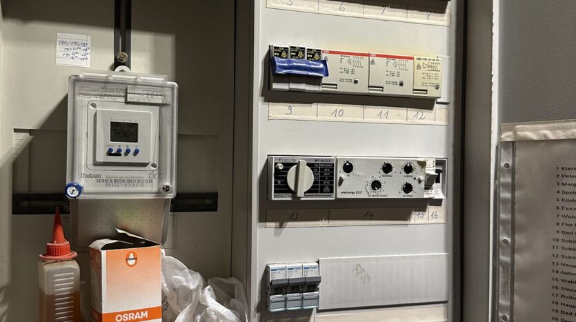Elektro Nachtspeicheröfen (Kaminofen im Wohnbereich des Erdgeschosses)