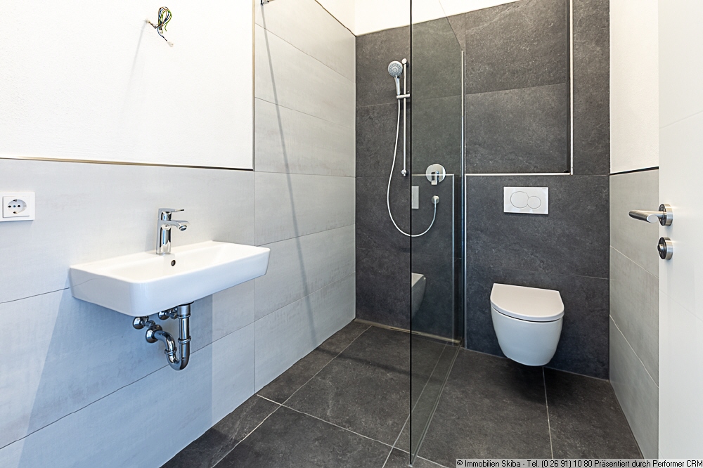 - komplett gefliest mit anthraziten Feinsteinzeug-Fliesen (120 cm x 60 cm)