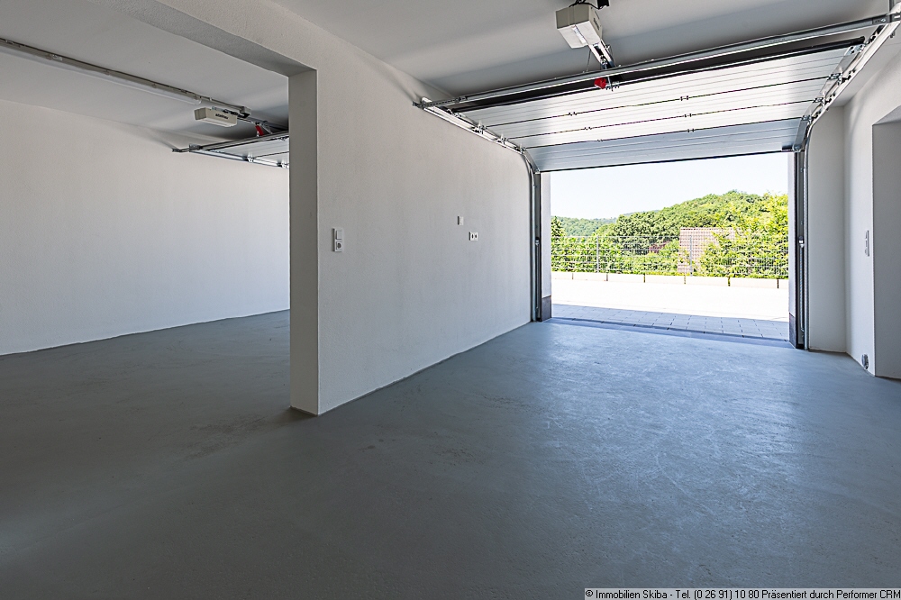 - Fußbodenheizung über eigene Luftwärmepumpe (Haustechnik im hinteren Teil der linken Garage)