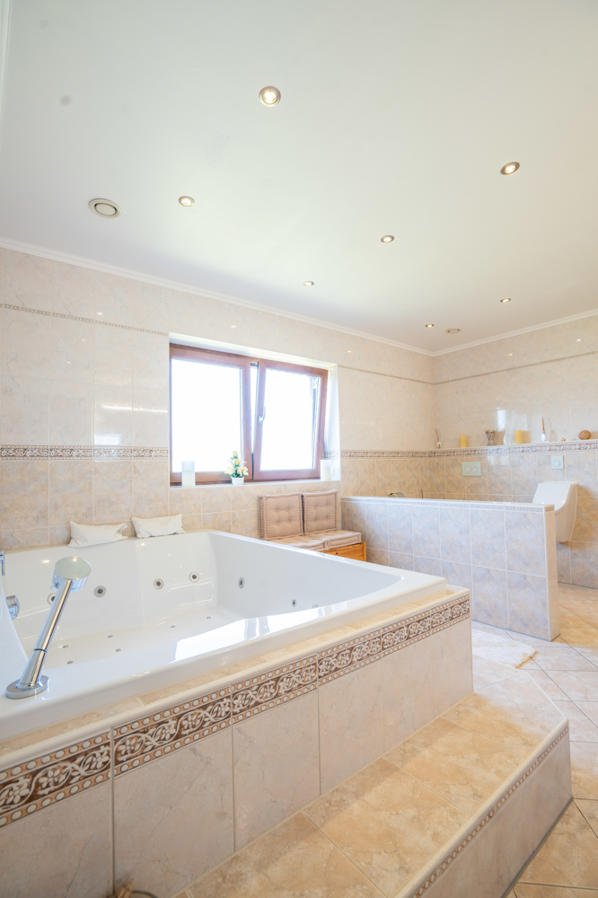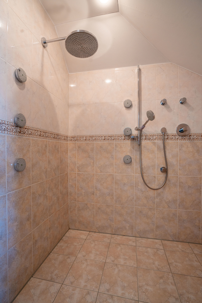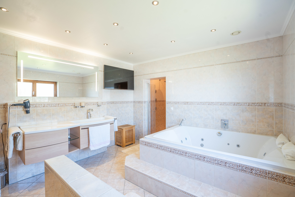 Das Obergeschoss wartet darauf, neue Bewohner im großzügigen Master-Schlafzimmer mit direkt angrenzendem Bad en Suite mit Whirlpool, großem TV und eigenem Duschraum zu begrüßen.