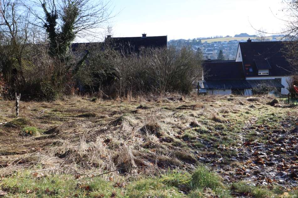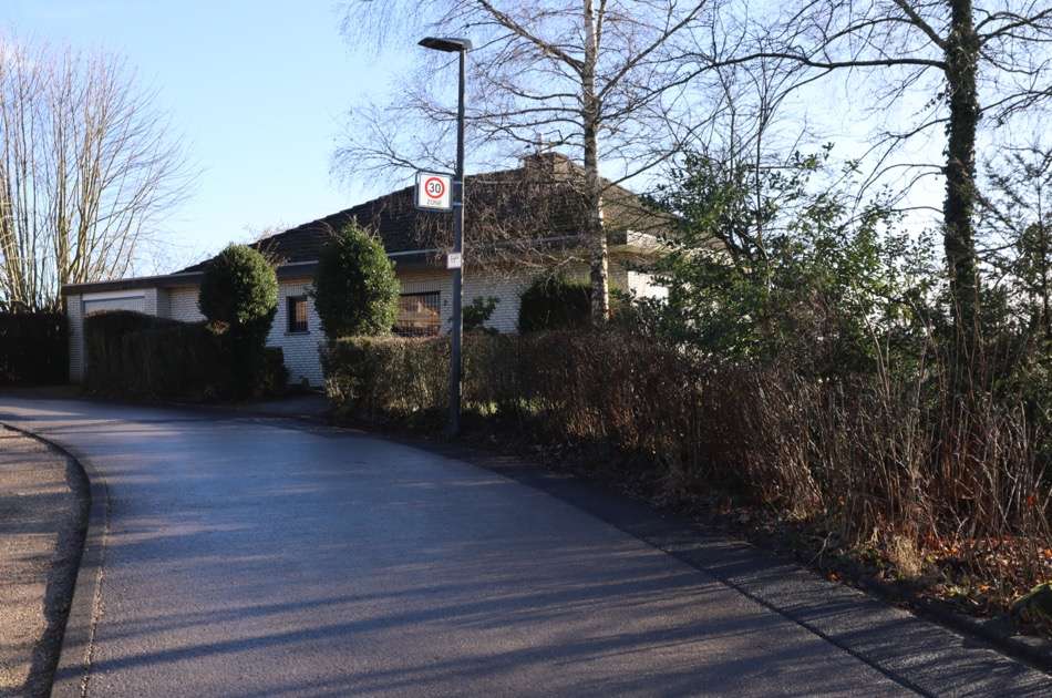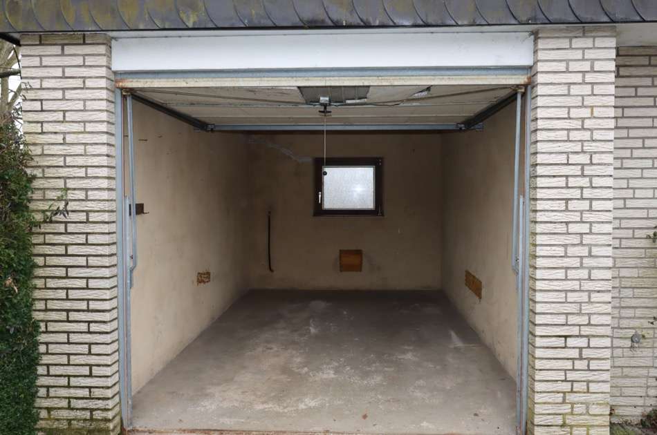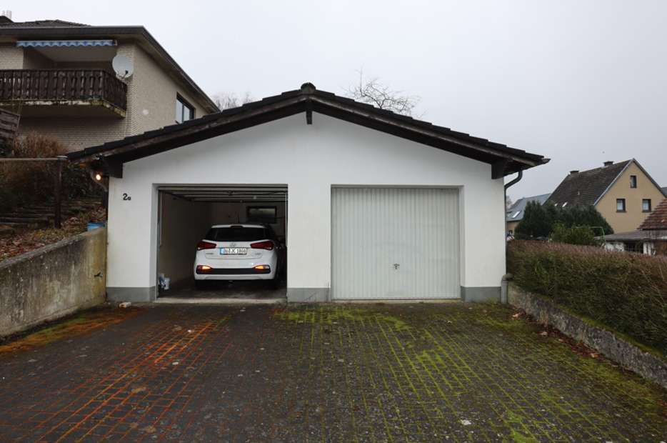 Das Grundstück ist 1277 m² groß. Der Garten ist pflegeleicht angelegt. Eine der drei Garagen ist links an das Haus angebaut. Im unteren Bereich des Grundstücks befindet sich eine separate Doppelgarage. Eine der hier befindlichen Garagen gehört zur Einliegerwohnung. Das neben der Einzelgarage liegende Gartengrundstück könnte gegebenenfalls noch bebaut werden.