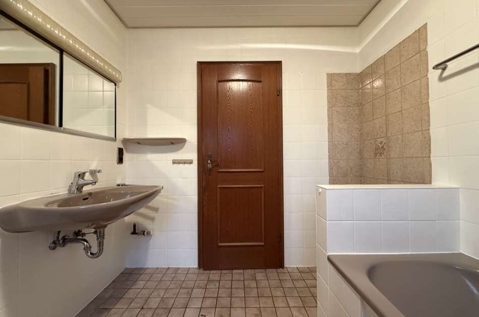Das Haus verfügt über eine großzügige Hauptwohnung im Erdgeschoss und eine Einliegerwohnung mit eigenem Eingang im Sockelgeschoss. Die Einliegerwohnung ist vermietet, während die Hauptwohnung derzeit unbewohnt ist. Käufer könnten so die Hauptwohnung direkt selbst bewohnen oder aber nach Bedarf vermieten.