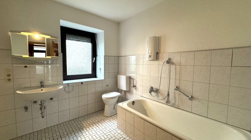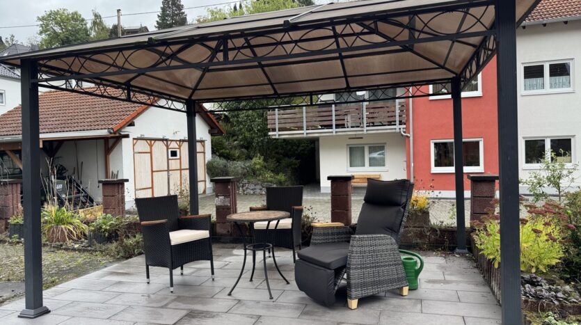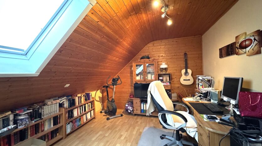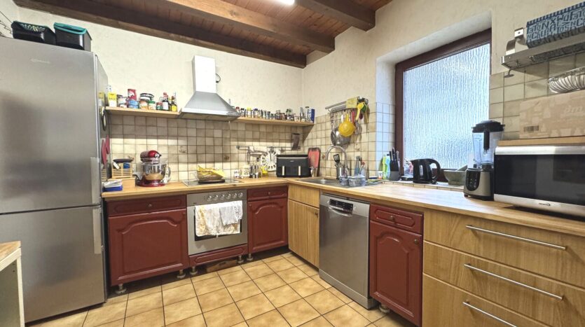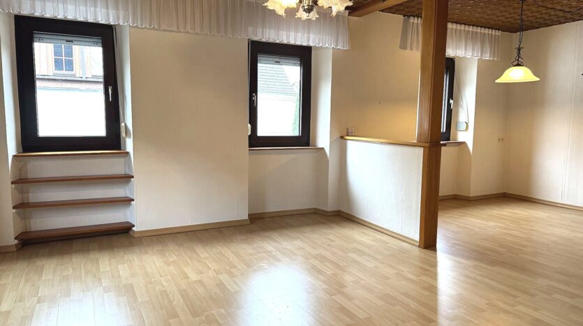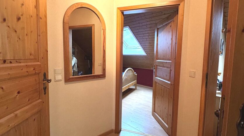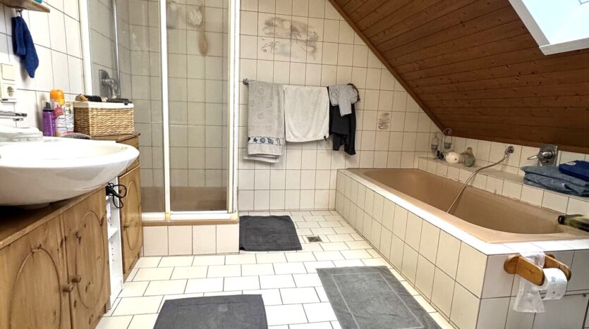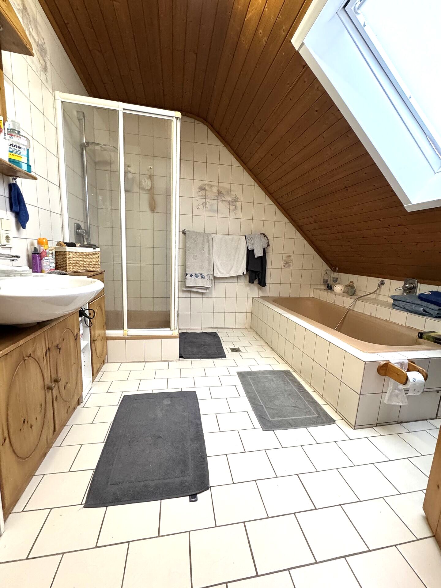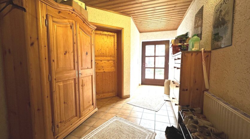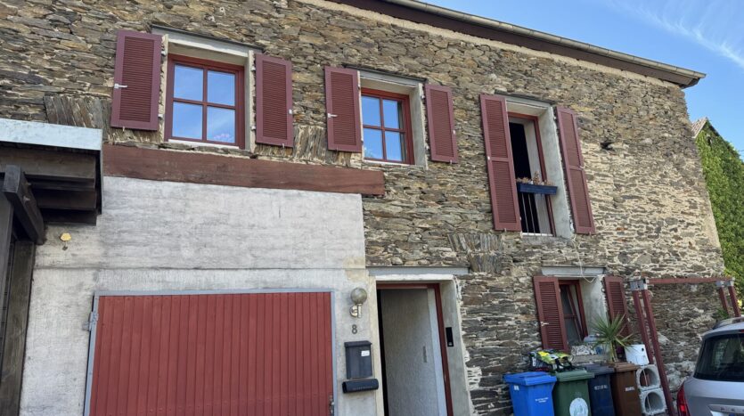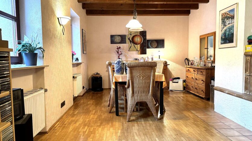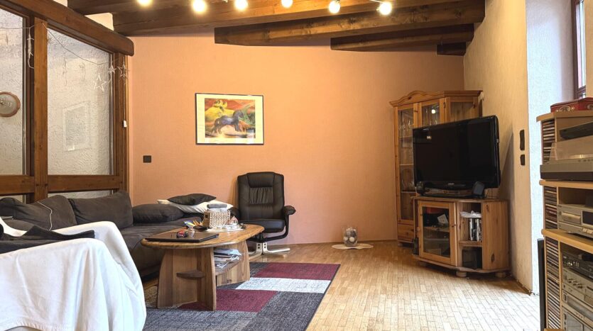 Der rechte Doppelhaus (Hausnummer 8) wurde im Jahr 1990 aufwendig umgebaut. Ursprünglich eine Scheune, bietet es heute mit 95 m² Wohnfläche modernen Wohnkomfort, einschließlich eines stilvollen Badezimmers und eines praktischen Gäste-WCs. Eine einladende Terrasse erweitern den Wohnraum ins Freie und schaffen ideale Plätze zum Entspannen und Genießen.