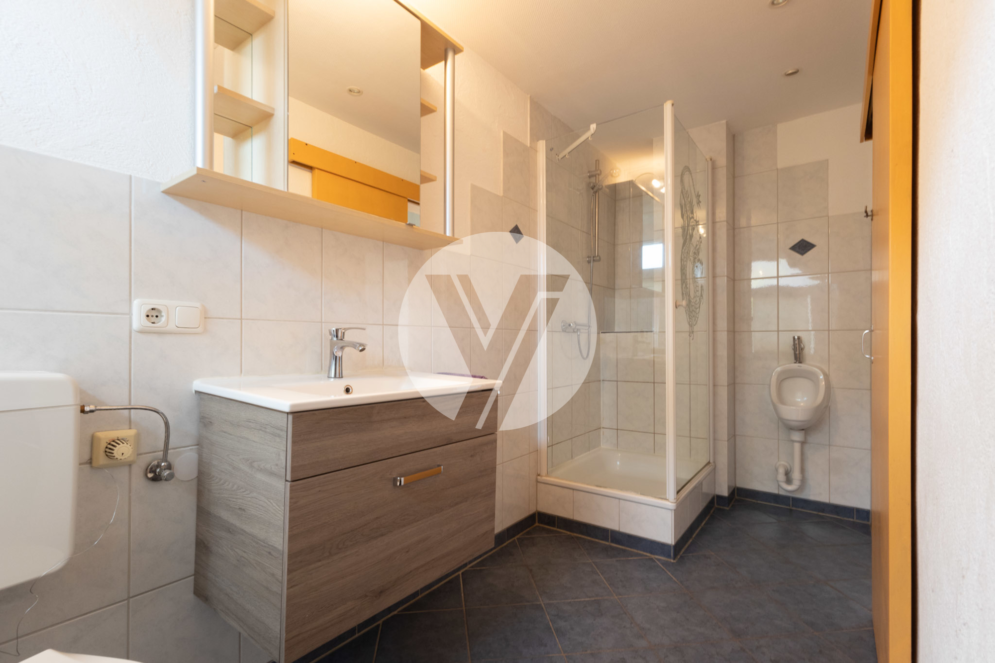 Im Erdgeschoss erwartet Sie ein einladendes Wohn-/Esszimmer mit angrenzender Küche und direktem Zugang zur sonnigen Terrasse – perfekt für entspannte Abende oder gesellige Stunden. Das Tageslichtbad ist mit einer Dusche sowie einem Pissoir ausgestattet.