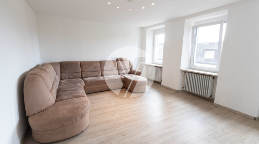 Im Obergeschoss befinden sich zwei helle Zimmer, die sich flexibel als Schlaf-, Kinder- oder Wohnzimmer nutzen lassen.