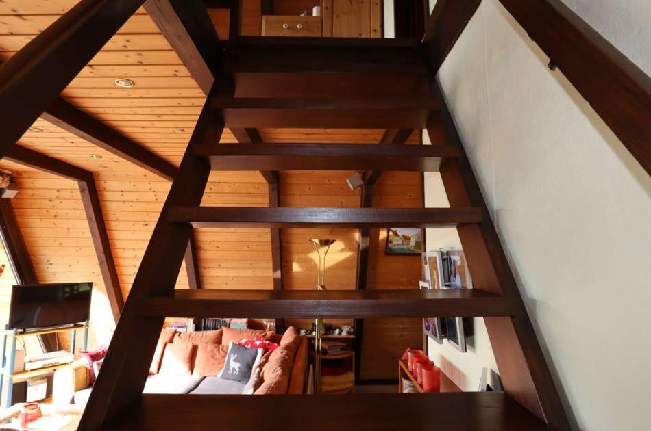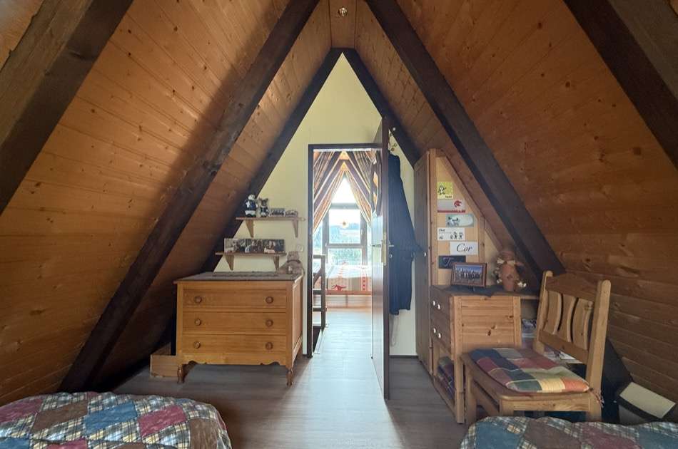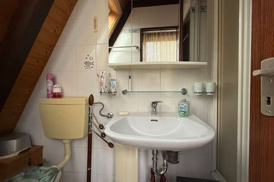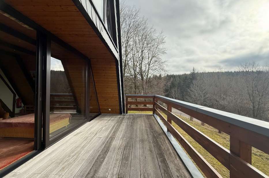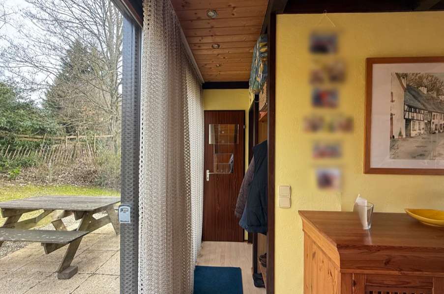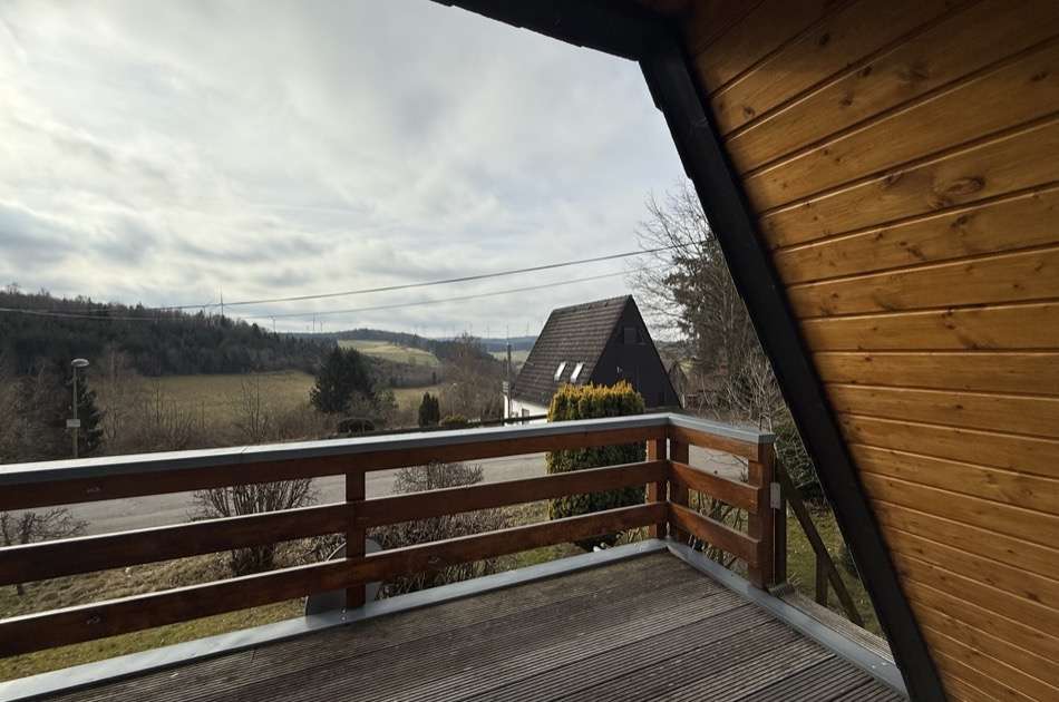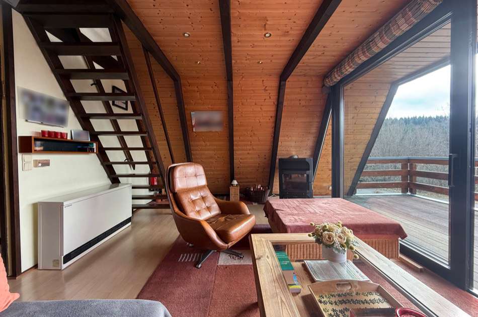 Sie betreten das Haus und befinden sich im großzügigen Wohnbereich mit Zugang zur nach Süden weisenden Terrasse. Von hier fällt der Blick über das Tal in die Natur. Im Erdgeschoss befindet sich neben einem großen Wohnbereich ein kleines Duschbad, eine kleine Küche und ein Abstellraum. Im Obergeschoss befinden sich eine kleine Diele und zwei Schlafzimmer, wovon eines ebenso einen wunderschönen Fernblick in die Eifeler Landschaft bietet. Die Wohnfläche beträgt ca. 50 m². Das Ferienhaus wurde stets gut instandgehalten. So wurden die Nachtspeicheröfen erneuert und ein Scheitholzofen eingebaut. Hier können Sie Ihre Seele baumeln lassen und das beschauliche Leben auf dem Land genießen.