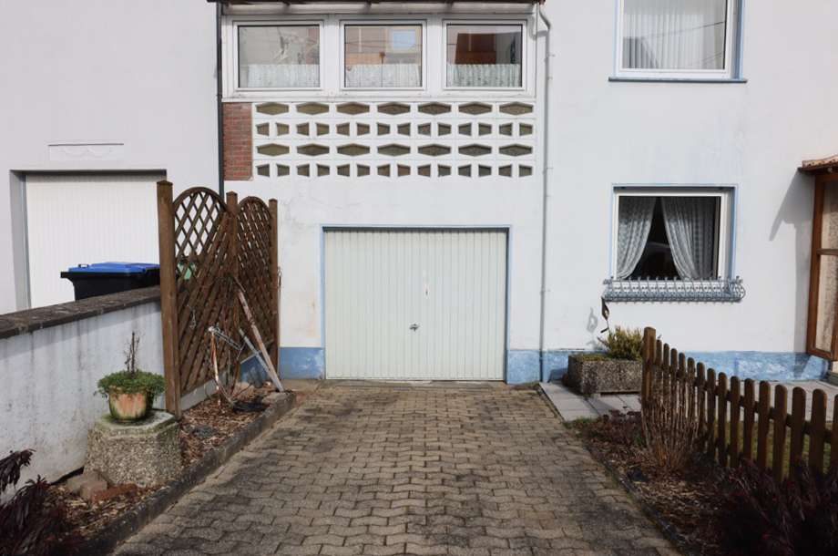 Außen: Vorgarten, Garage.