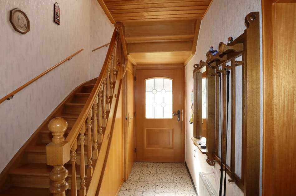 Das Objekt verfügt über eine Wohnfläche von ca. 114 m², die sich Erdgeschoss und Obergeschoss verteilen. Im Erdgeschoss befinden sich Wohnzimmer, Esszimmer Küche mit Abstellraum und das Bad. Eine massive Holztreppe führt ins Obergeschoss. Hier befinden sich vier Schlafzimmer und ein WC. Der Wintergarten befindet sich oberhalb der Garage und ist durch diese zu erreichen.