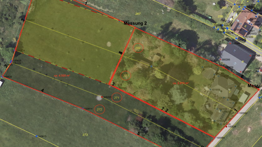 Das Grundstück ist 2.670 m² groß, eine weitere arrondierte Land- und Forstwirtschaftliche Fläche von ca. 4.520 m² kann exklusiv für 15.000,-€ dazu erworben werden. Das Gesamtgrundstück wäre somit 7.190 m² groß.