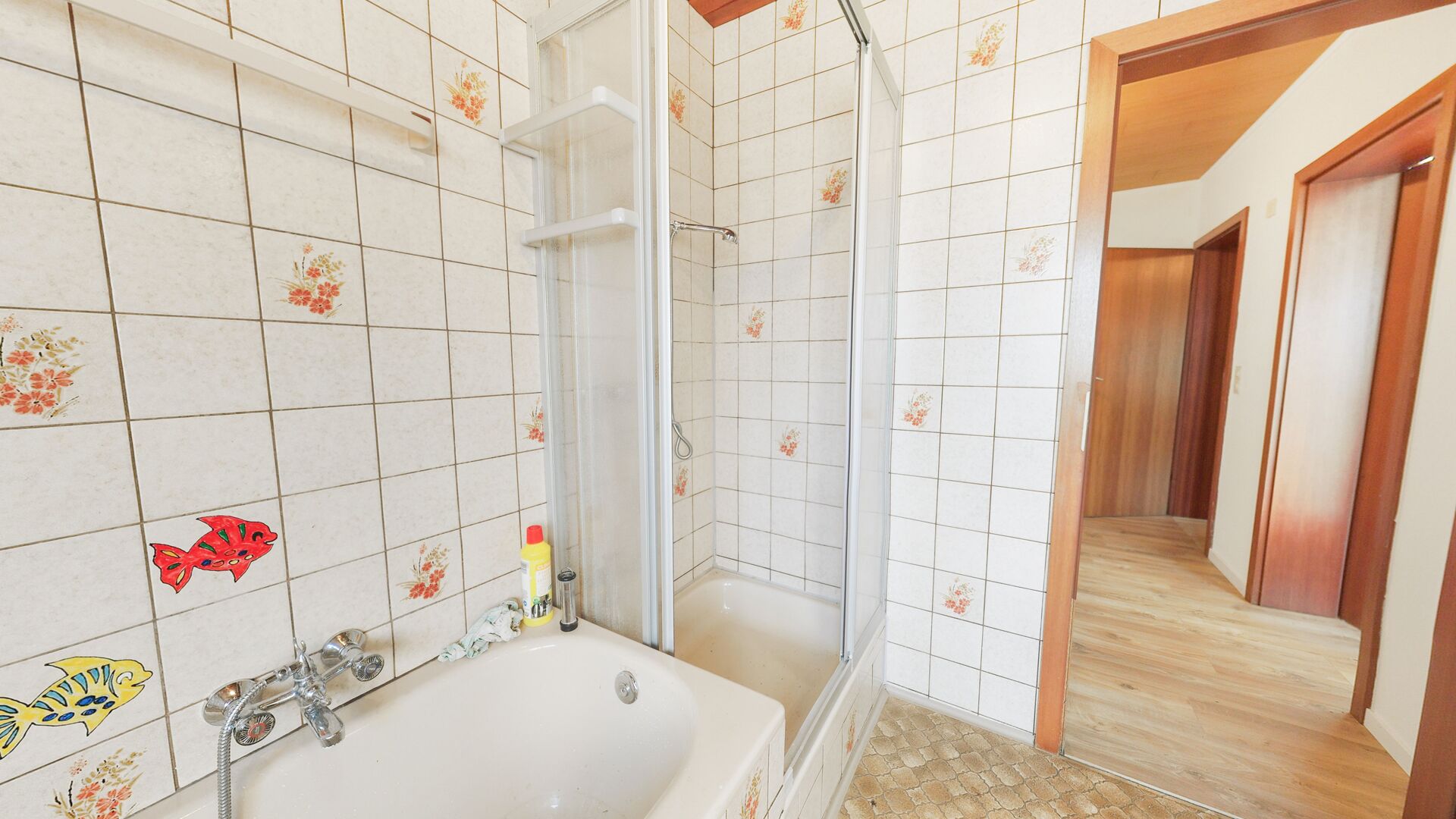 Die geräumige Wohnküche lädt zum gemeinsamen Kochen und Verweilen ein. Ergänzt wird die Etage durch ein Gäste-WC sowie ein helles Wannenbad. Das Highlight bildet das große Wohn- und Esszimmer mit direktem Zugang zum Garten bzw. zur Terrasse – ideal für entspannte Stunden im Freien und gesellige Zusammenkünfte.