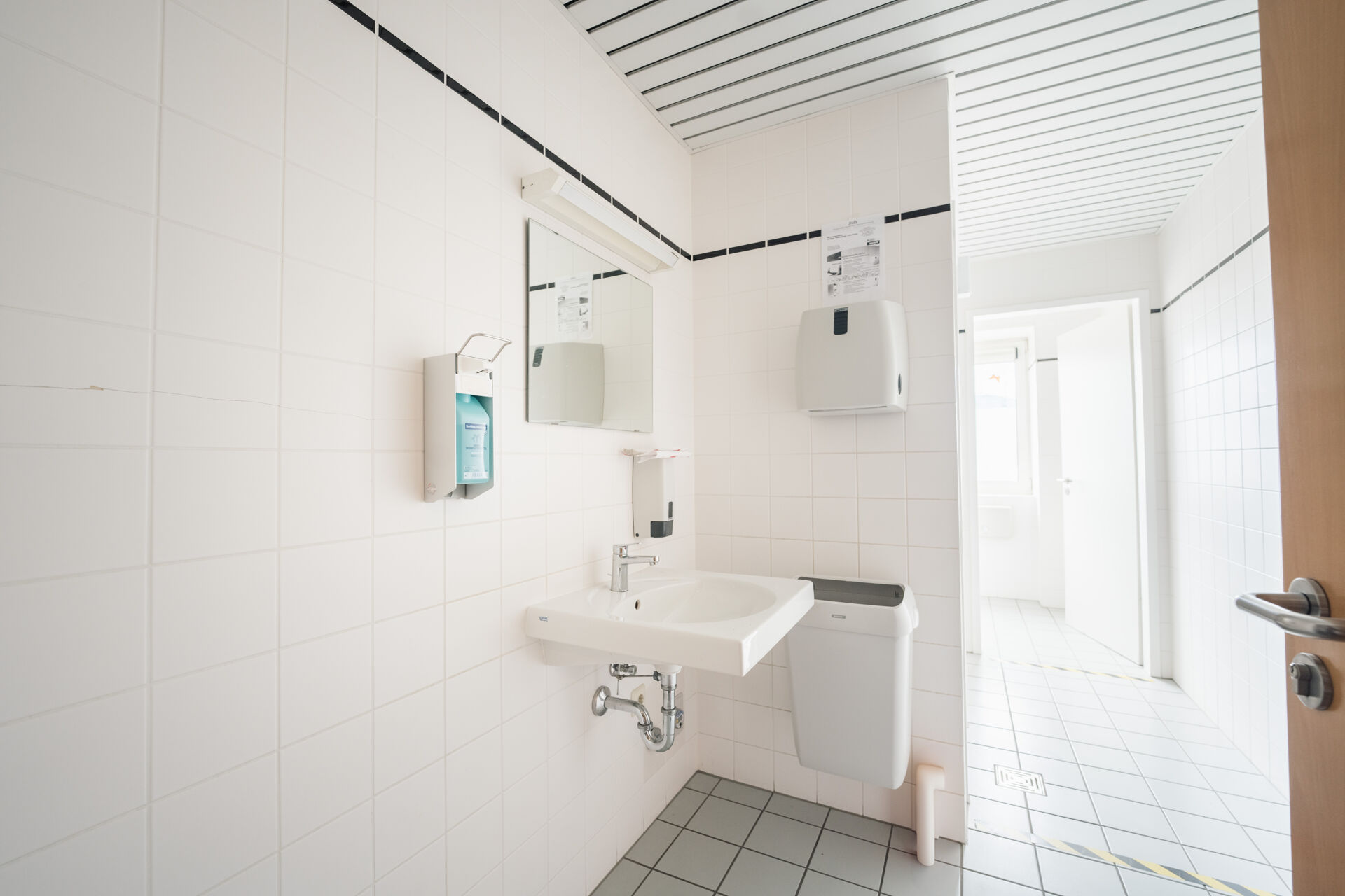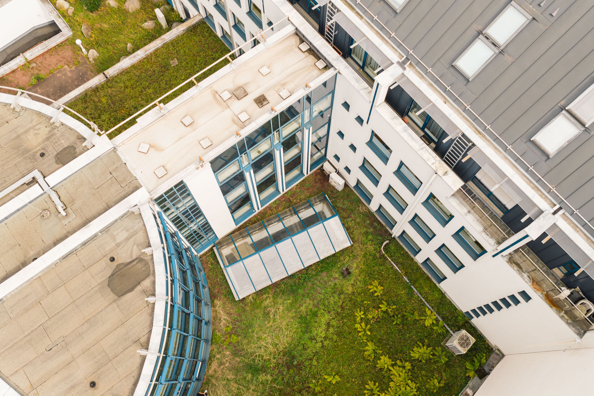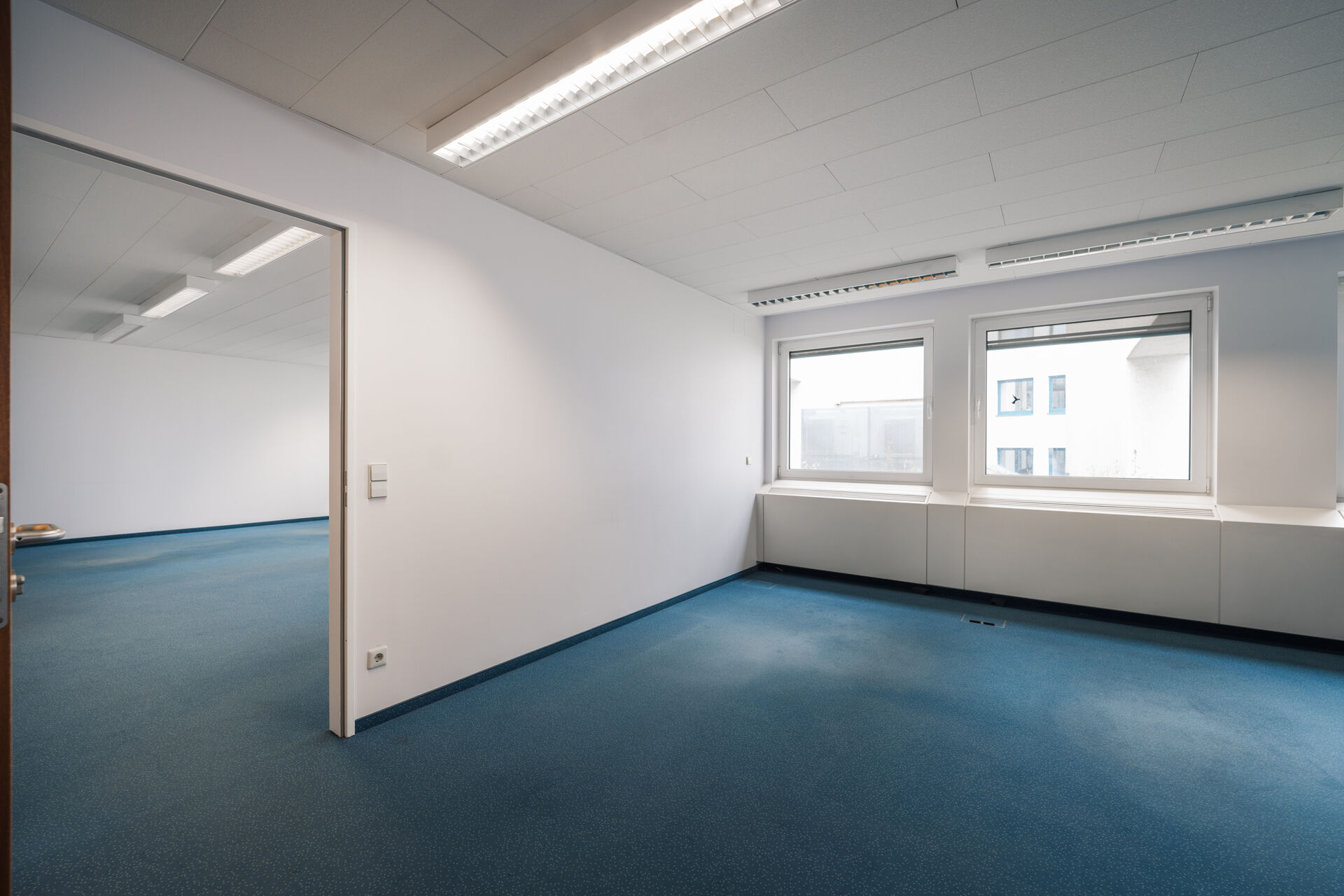 Beide Einheiten verfügen über einen eigenen Zugang über unterschiedliche Treppenhäuser mit Aufzug. Gleichzeitig sind die Bereiche durch einen Flurübergang mit Feuerschutztür verbunden, sodass auch eine vollständige Nutzung durch einen einzelnen Mieter möglich ist.