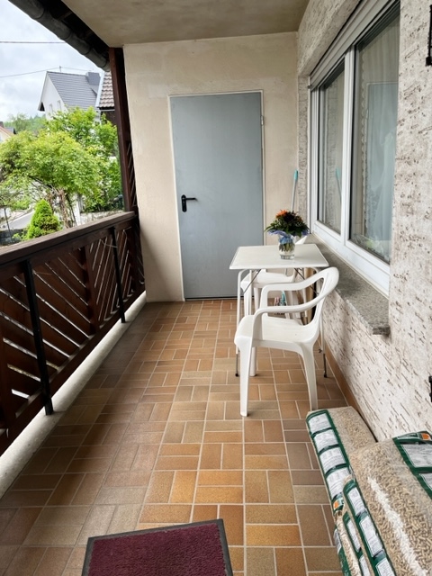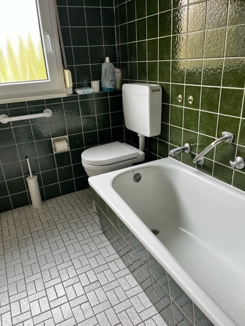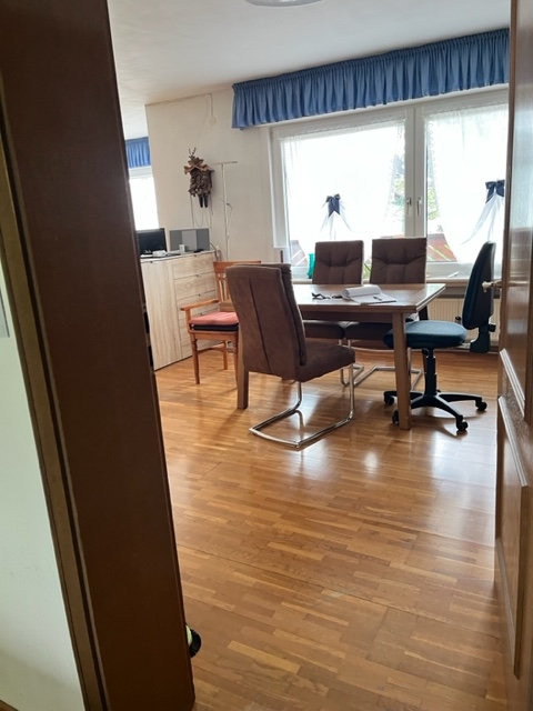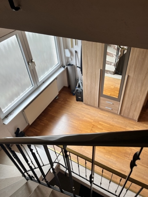 Das erste Obergeschoss bildet den zentralen Wohnbereich. Ein beeindruckend großes Wohn- Esszimmer mit Zugang zum Balkon schafft ein offenes und helles Wohngefühl. Vom Essbereich gelangt man direkt in die Küche. Von hier aus führt der Weg über die Terrasse in den Garten – ein geschützter Außenbereich, der zu jeder Jahreszeit nutzbar ist. Ergänzend stehen eine praktische Abstellkamm sowie ein Badezimmer aus dem Baujahr zur Verfügung.