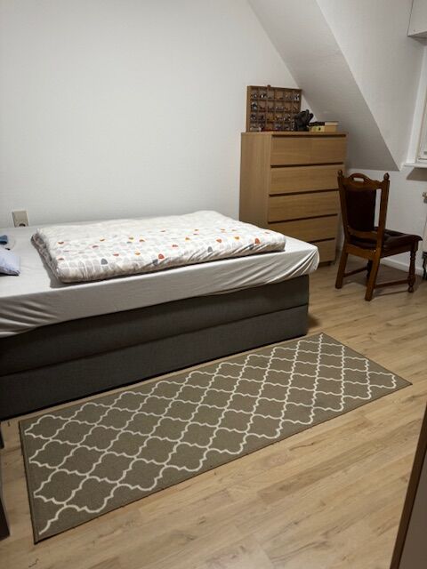 In der oberen Etage befinden sich 3 gut geschnittenen Schlafzimmer. Die Bodenbelag wurde hier bereits erneuert. Zusätzlich gibt es weiteres Badezimmer aus dem Baujahr. Ein besonderes Entwicklungspotential bietet der Dachboden.