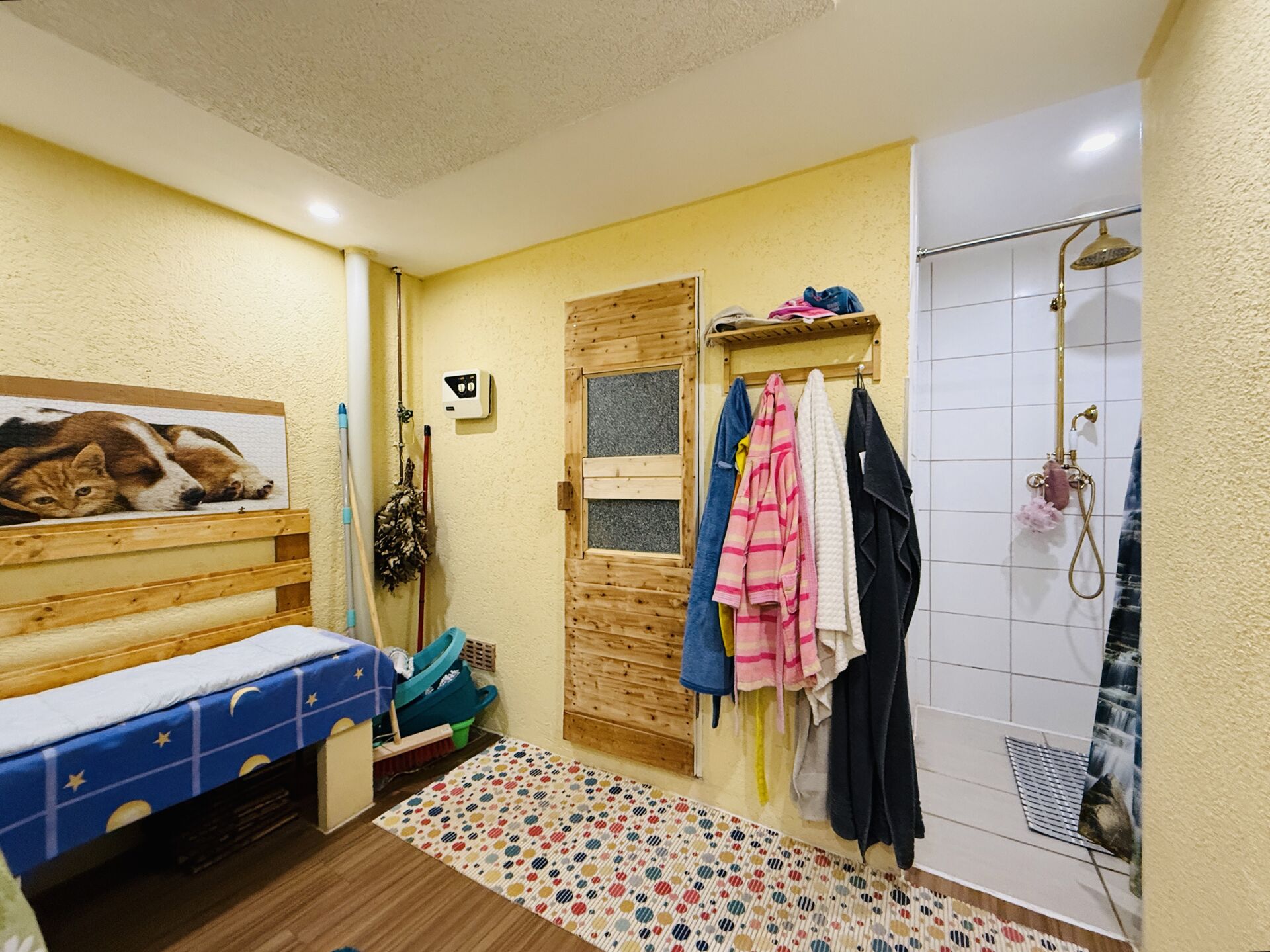 Im Untergeschoss befindet sich ein separater Bereich mit eigenem Zugang. Diese Fläche von ca. 56 m² unterteilt sich in 3 Zimmer, eines davon mit vorhandenen Küchenanschlüssen, sowie ein Duschbad. Ideal als Gästewohnung, für ein älteres Kind oder als Büro.