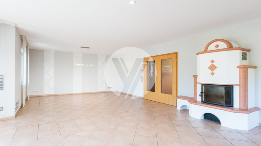 Bereits beim Betreten des Hauses fällt der großzügige und offene Grundriss ins Auge. Der große, lichtdurchflutete Wohn-Essbereich mit einem gemütlichen Kachelofen und direktem Zugang zur Terrasse bildet das Herzstück Ihres neuen Zuhauses. Die großzügige Wohnküche ergänzt diesen Bereich perfekt. Ein Gäste-WC sowie ein multifunktionales Zimmer, welches als Gästezimmer oder Home-Office genutzt werden kann, runden das Erdgeschoss ab. Der interne Zugang zur großen Doppelgarage erleichtert den Alltag zusätzlich, während drei weitere Stellplätze im Außenbereich bereitstehen.