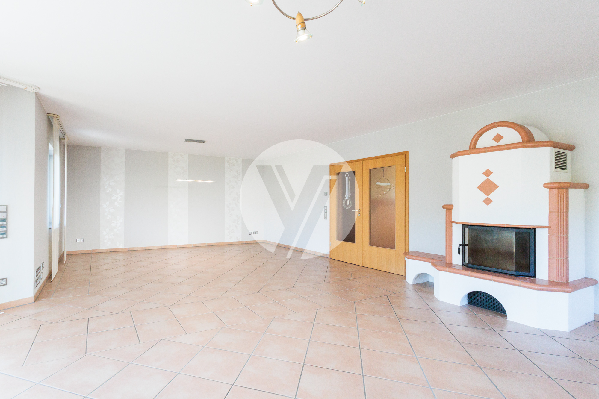 - Kachelkaminofen im Wohnzimmer (Küche und Diele)