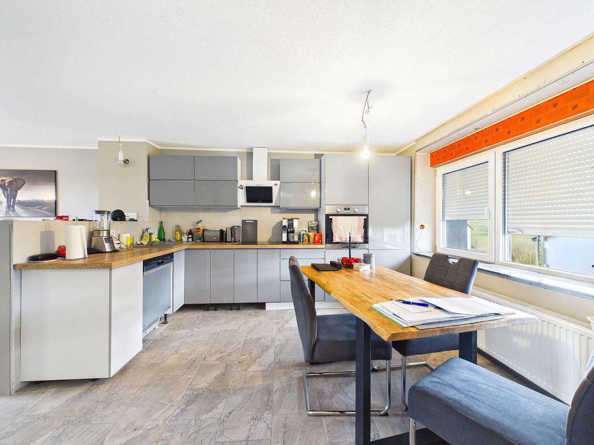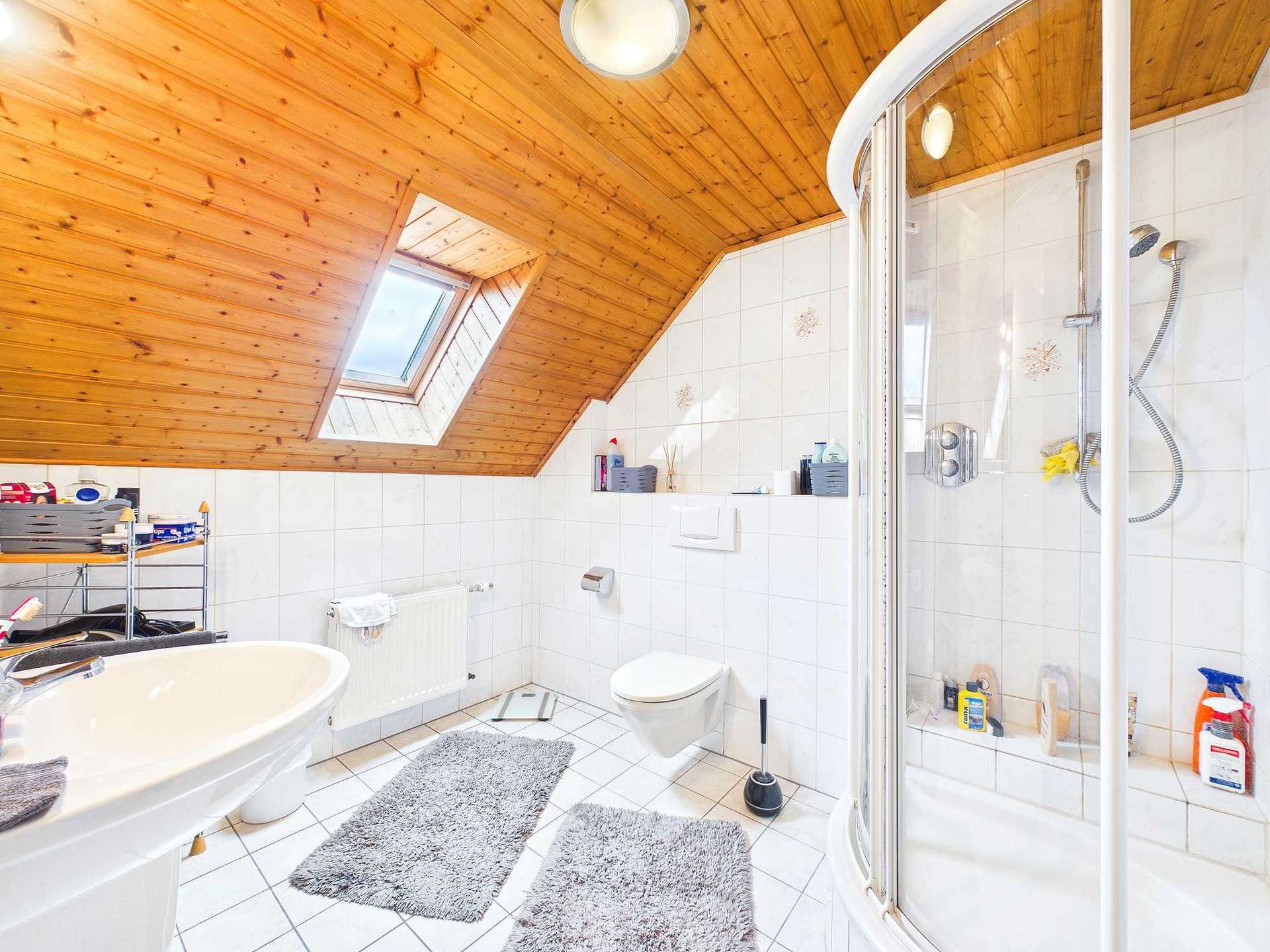 Das Obergeschoss ist über eine stilvolle Holztreppe erreichbar und bietet die Möglichkeit zur Nutzung als separate Wohneinheit. Hier stehen eine Küche, ein Badezimmer sowie drei weitere Zimmer zur Verfügung, die sich als Wohn- und Schlafräume eignen. Bei einer Gesamtnutzung des Hauses ergeben sich dadurch vielfältige Optionen für individuelle Wohnkonzepte, beispielsweise Mehrgenerationenwohnen, Wohnen und Arbeiten unter einem Dach oder eine teilweise Vermietung.