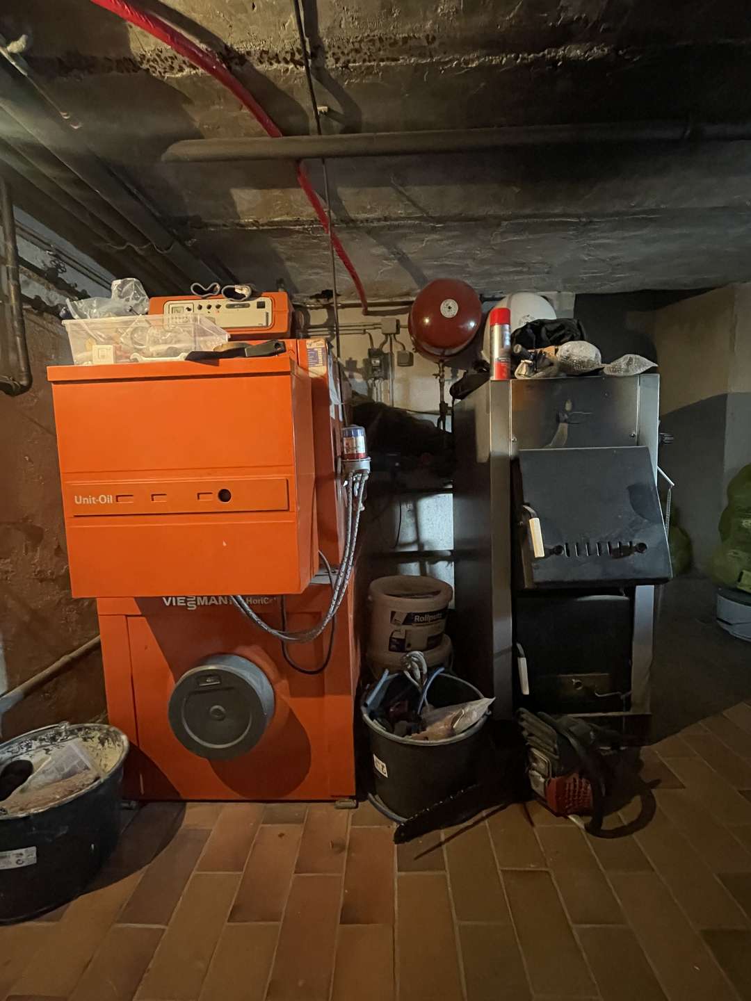Beheizt wird das Haus aktuell mittels einer Öl-Zentralheizung aus 1990. Die Anlage ist auch für die Warmwasseraufbereitung zuständig. Zusätzlich zu der Öl Heizung gibt es eine zweite Anlage, welche mittels Festbrennstoff (Holz) betrieben werden kann. Diese Anlage wird aktuell nicht genutzt und müsste von einem Fachmann und dem Schornsteinfeger sicherlich noch einmal überprüft werden.