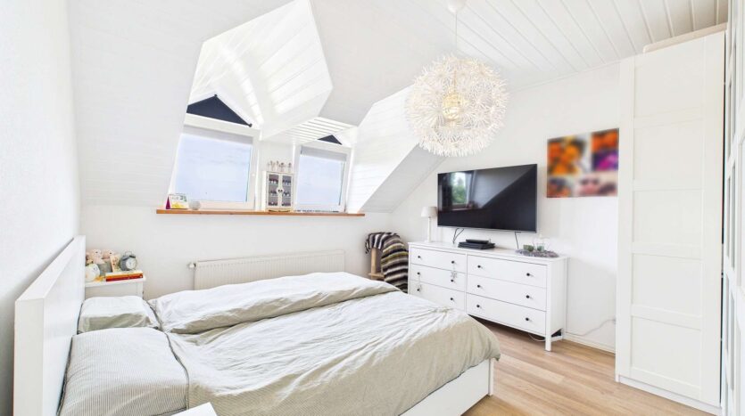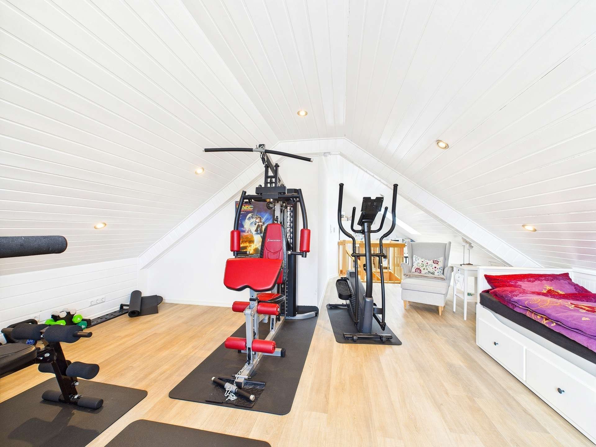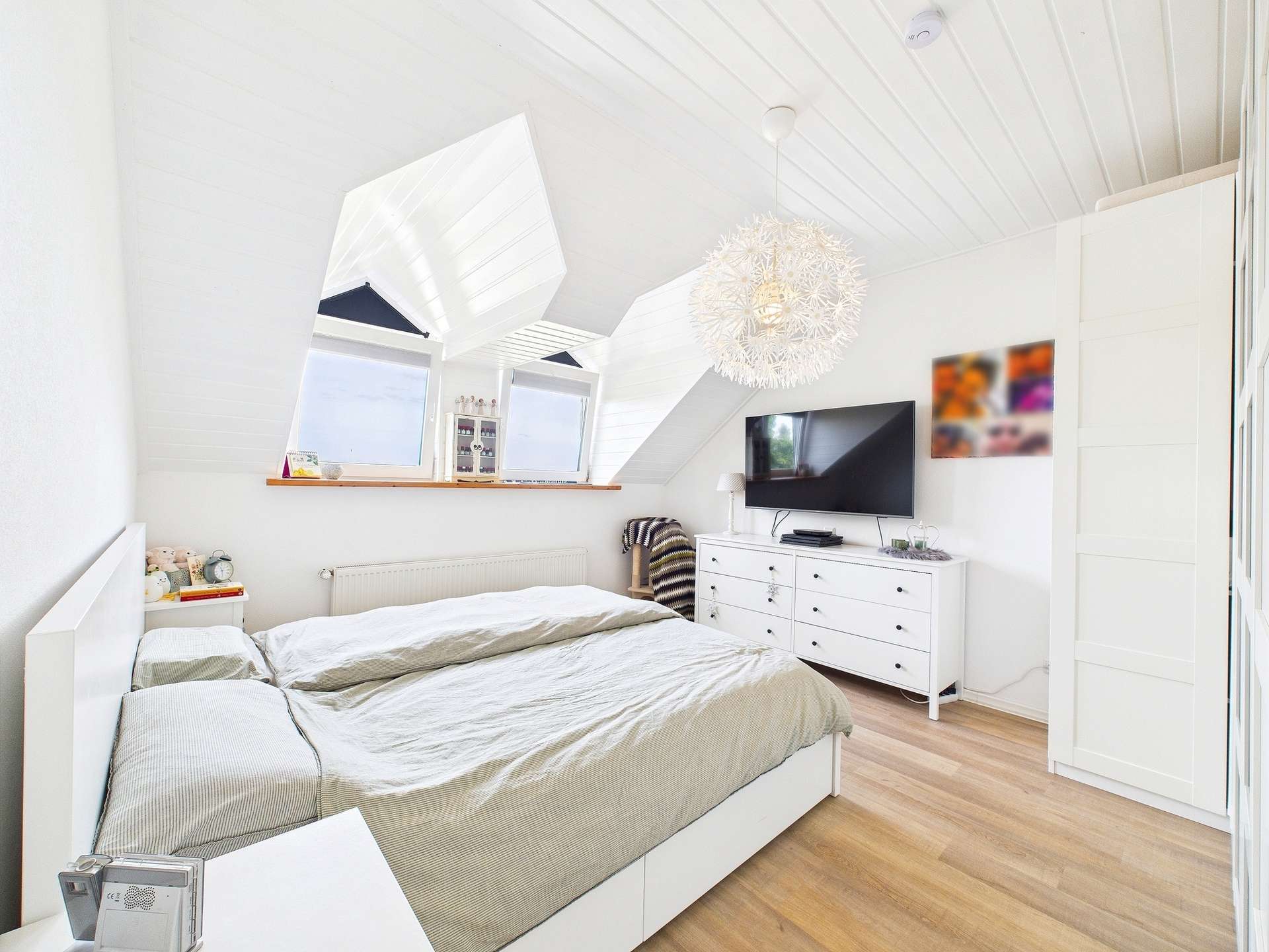 Das ausgebaute Dachgeschoss, erreichbar über eine Wendeltreppe, bietet zusätzliche Wohnfläche – perfekt als Homeoffice, Gästezimmer oder Rückzugsort.