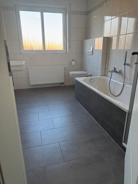 Die komplette Renovierung umfasst neue Innentüren, frisch gestaltete Bäder, neue Heizkörper und frisch gestrichene Wände. Diese verleihen der Wohnung ein freundliches Ambiente.