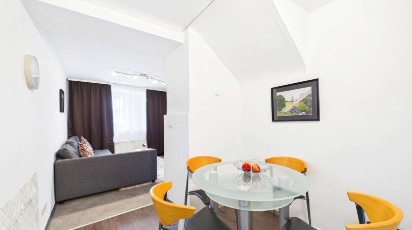 Die großzügige Maisonettewohnung im Ober- und Dachgeschoss bietet etwa 100 m² Wohnfläche und ist fest vermietet – mit einer monatlichen Kaltmiete von ca. 690 €. Ergänzt wird sie durch zwei voll möblierte Ferienwohnungen, die sich ideal für den sofortigen Weiterbetrieb eignen: eine im Obergeschoss mit ca. 30 m² und eine im Untergeschoss mit ca. 40 m².