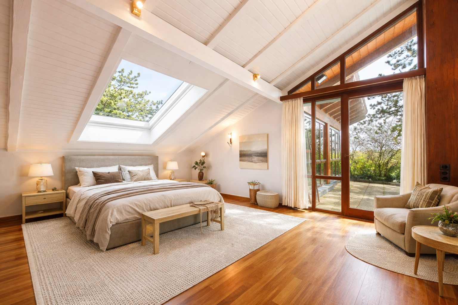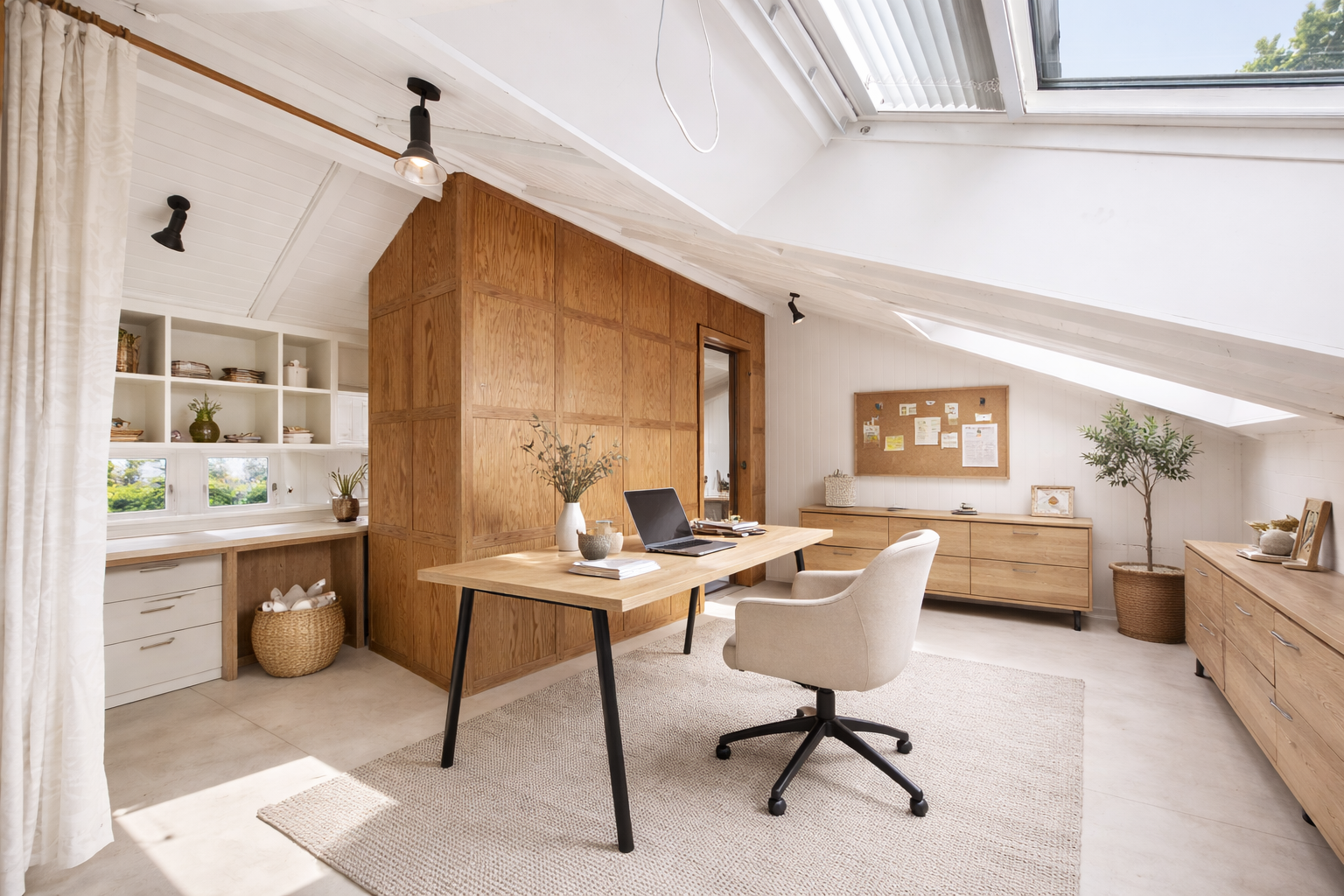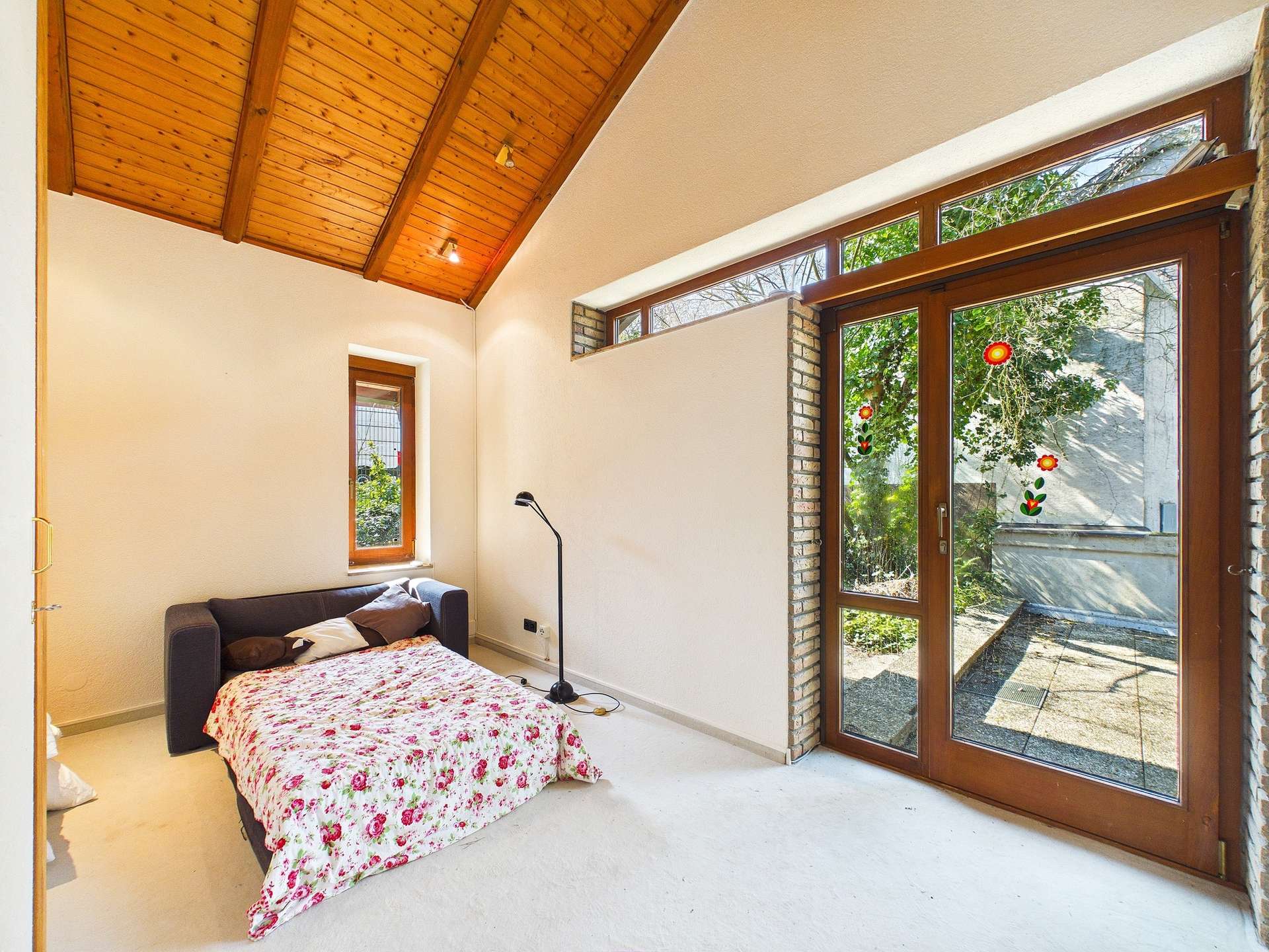 Über eine Treppe gelangen Sie in das Obergeschoss, das sich hervorragend als Gästebereich, Homeoffice oder separater Arbeits- und Kreativbereich eignet. Ob stilvolles Gästezimmer, ruhiges Büro oder individueller Rückzugsort, auch hier zeigt sich die besondere Flexibilität dieses Hauses.